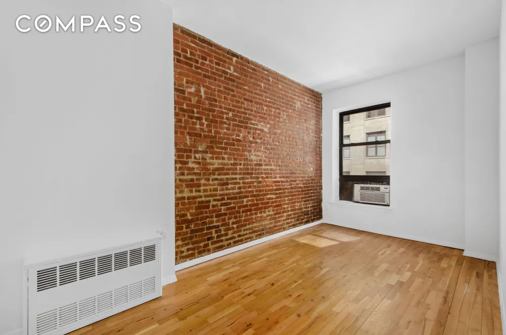 The apartment features nicely scaled rooms, especially it's large, square primary bedroom, lengthy living room (framed by a massive, nearly floor to ceiling window) and an oversized bathroom. There is lots of pre-war detail including exposed brick and archways. There is also excellent closet space, through wall a/c, and the ability to add an in-unit washer/dryer.