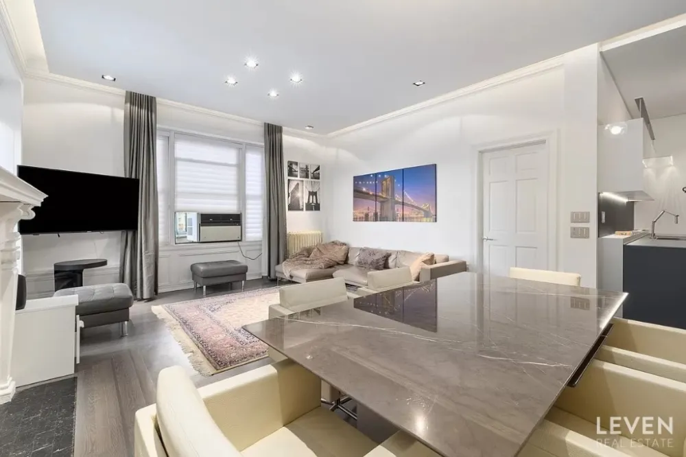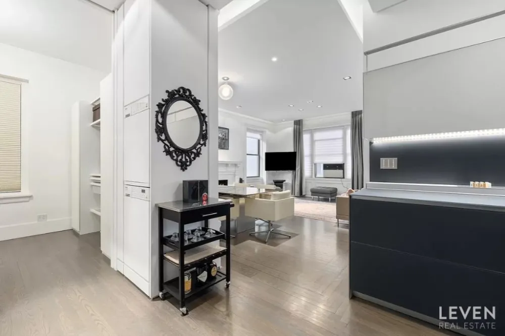 The ultimate interior designer's dream apartment, sold turn-key! This sprawling 3 bedroom, 2 bathroom top floor corner residence was meticulously renovated with beautiful hardwood floors throughout, recessed lighting with Lutron Vierti dimmers, crown moldings, and 10.5' ceilings. The spacious living and dining room feature a window with views to Central Park and a fantastic Valcucine open kitchen with high-end appliances, including a Miele washer & dryer, two Liebher Grand Cru wine coolers, and a large Bianco stainless steel sink. The primary bedroom boasts an en-suite windowed bathroom and a massive, customized walk-in closet with Clei modular design that is sure to please even the most discerning resident. Both spa-like bathrooms feature floor to ceiling Italian marble and fixtures like Duravit automatic toilets. The stately furniture includes Minotti-designed beds, Matteo Grassi chairs and sofa, Draenert dining room table, and finishes such as Rimadesio sliding doors. Southern exposure onto Broadway adds to the charm of this unique apartment.