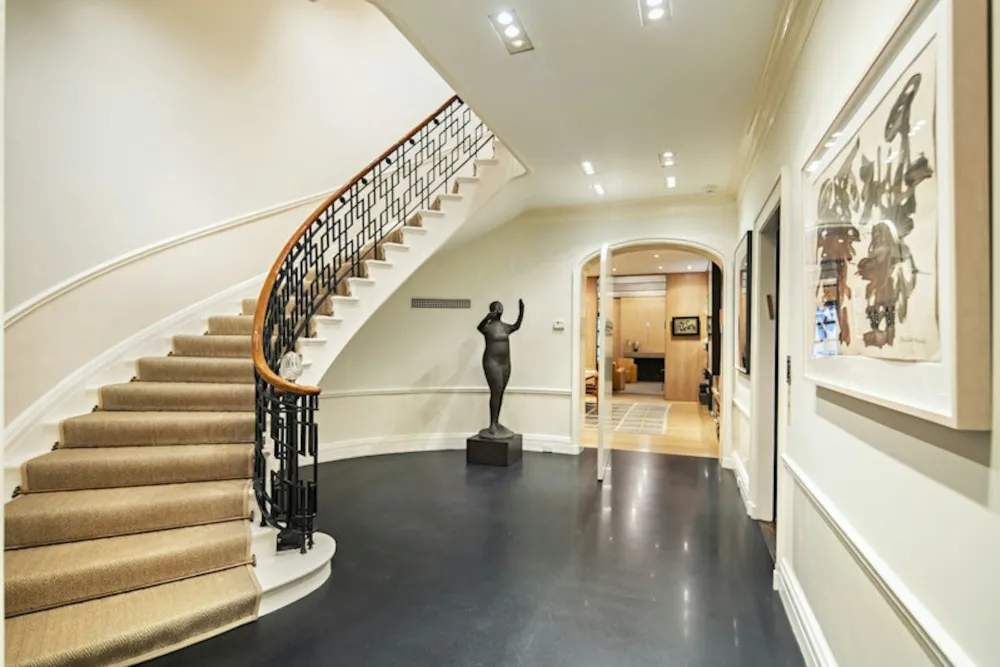 The secure formal entrance is an immediate invitation into the clean and minimalist elegance of this home. A very large gallery graced by a WBFP and extra large closet leads to the center Hall with its spectacular 1930 staircase ascending gracefully to the the top floor to reach a superb original cupola rising above it