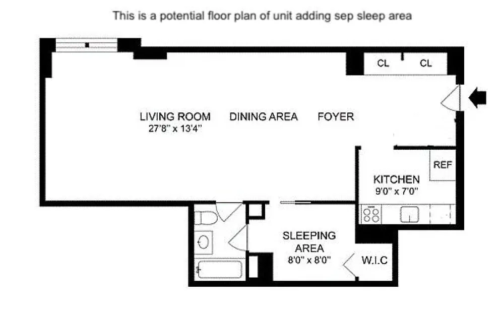 This spacious alcove studio has a low maintenance, as well as a flexible alcove that can be used for an office space, dressing room, or reconfigure it and create a separate sleeping space. The flexible, large living room could easily welcome a bedroom space, dining nook, and a living room – can be configured to your specifications to create a totally unique oasis in the middle of the greatest city in the world!
