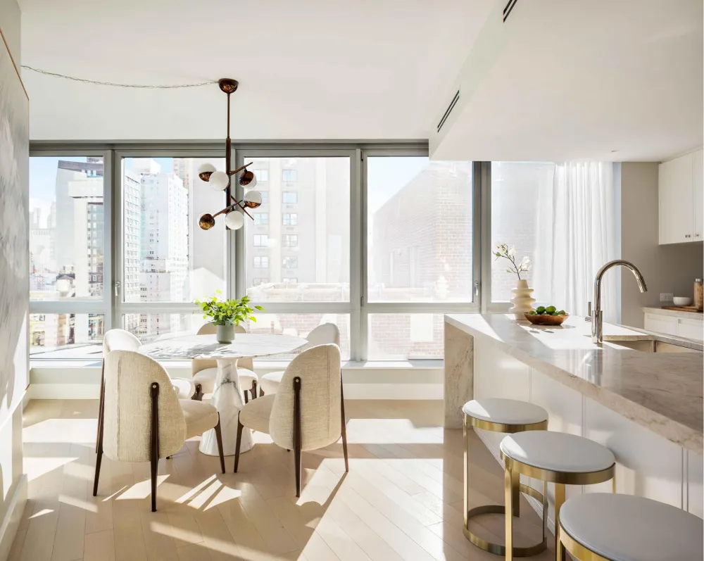 This magnificent, 2,834 square-foot, four-bedroom, four-and-a-half-bathroom home unveilssweeping Upper West Side views from Central Park to Columbus Circle through south, east, and west-facing floor-to-ceiling windows.