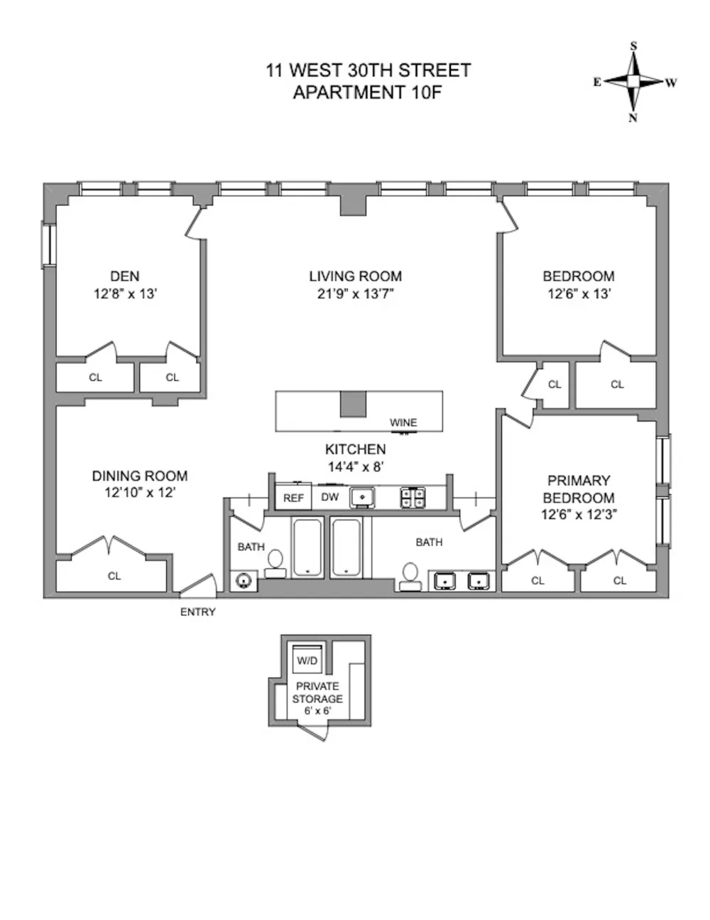 Apartment 10F is one of only two apartments on the 10th floor and comes with a deeded private storage closet on the floor with a washer/dryer. With its impeccable condition, adaptable layout, and abundance of natural light - 10F is ready to be your next home.