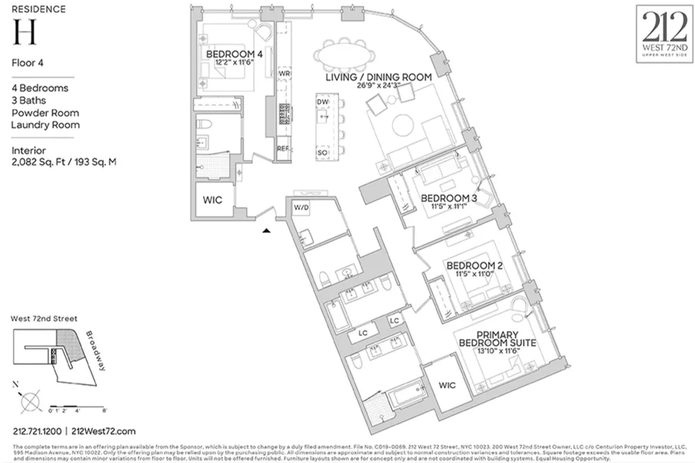 Exclusive Sales & Marketing Agent: Douglas Elliman Development Marketing. The complete terms are in an offering plan available from the Sponsor, which is subject to change by a duly filed amendment. File No. CD19-0069. 212 West 72 Street, NYC 10023. 200 West 72nd Street Owner, LLC c/o Centurion Property Investors, LLC, 595 Madison Avenue, NYC 10022. Equal Housing Opportunity.