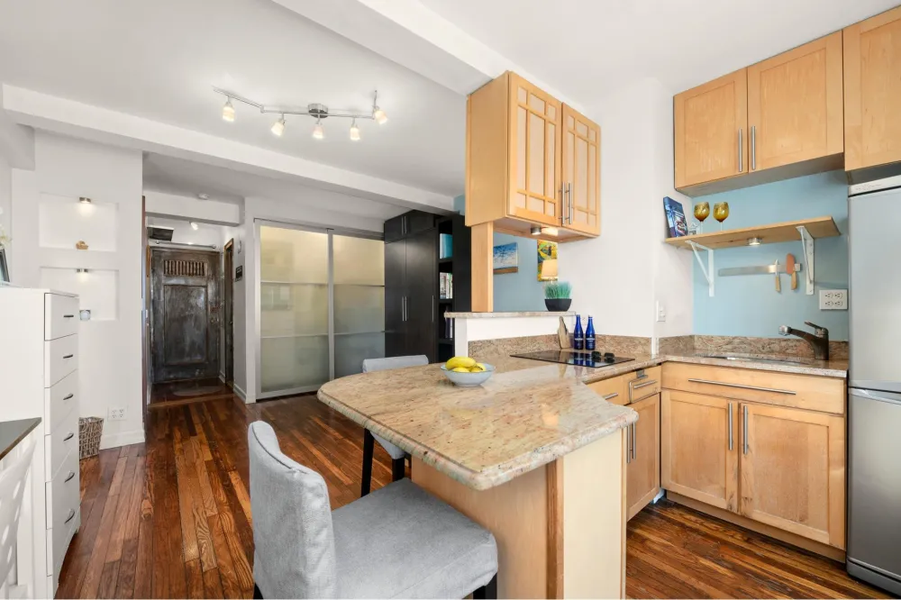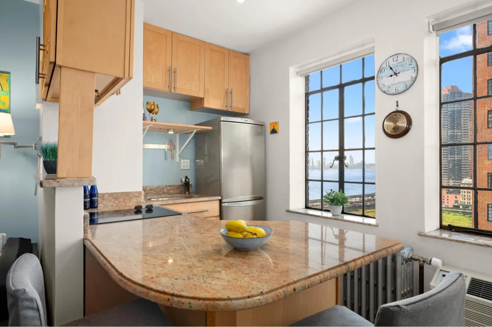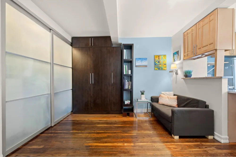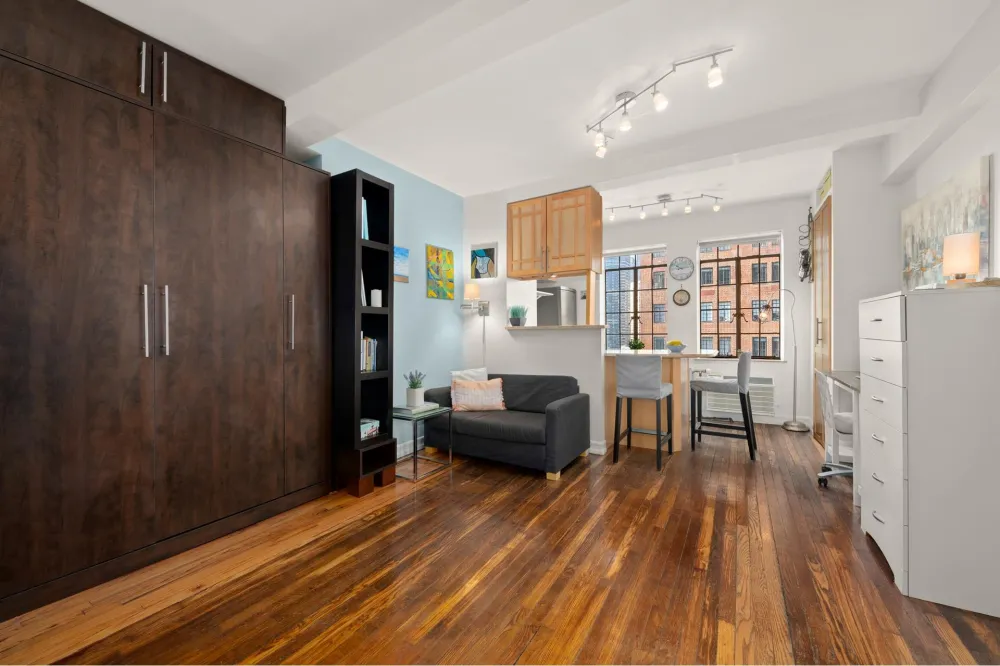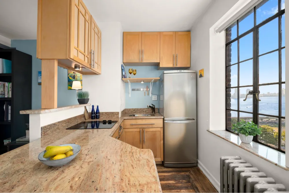 Residence 1020 is elegant, modern, and upgraded apartment with spectacular views of East River, Manhattan skyline and lush green park with beautiful landscape in front of the building.Facing South, this home has an abundance of natural sunlight.The space is immaculately designed and highly functional. There's plenty of storage with spacious closets, cabinets, shelves, and custom-built wardrobe system equipped with motion-sensor accent light that turns off automatically. Friedrich WallMaster Through-The-Wall Air Conditioner has remote control.There's perfectly set up home office to keep all documents and gadgets together for productive work. With smartly configured and easy to use queen size murphy bed, the apartment can be easily transformed from spacious living room to comfortable bedroom. The bathroom with large tasteful tiles in natural colors and glass sliding doors has stylish, spa-like ambiance.The kitchen has full size LG refrigerator, build-in electric cooktop, custom built pantry, multiple floor-to-ceiling cabinets, wine storage, a large sleek granite counter with 2 comfortable bar stools. It makes an ideal place to cook meals, entertain and enjoy your favourite drink with a spectacular view.The sun terrace in the building is not only most beautiful and largest rooftops in Midtown, but in all of New York.It offers breath-taking 360-degree panoramic views of Manhattan, East River and UN Headquarters, modern patio furniture including tables and sunbed, well maintained herbal / flower garden and even high-speed Wi-Fi connection.Prospect Towers is full service, 24-hour doorman building with elevators, laundry room, bike storage, additional storage lockers available for rent, outstanding live-in super, friendly staff, and excellent financials. It has been home to numerous celebrated residents and was featured in many films and TV shows.There's an easy access to Central Park, Chelsea, and every part of the city as the building is close to subways, busses, Grand Central Terminal, East River Ferry, and FDR. Conveniently located, it's close to top restaurants and wine bars, shops, world class hotels, Theatre District, Embassies and Art Galleries with numerous culturally exciting events, entertainment, and nightlife. There are two Whole Foods (at Bryant Park & 57th St) and Trader Joe within a short walking distance. Residents have exclusive access to Fitness Centre at 5 Tudor City Place for a small monthly fee. Maintenance includes electricity, heat, hot water, and all taxes. Apartment is in move in condition as a perfect starter home or pied-a-terre.