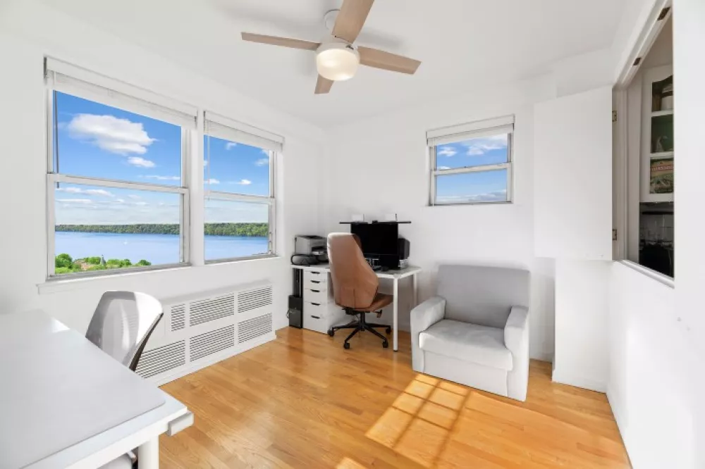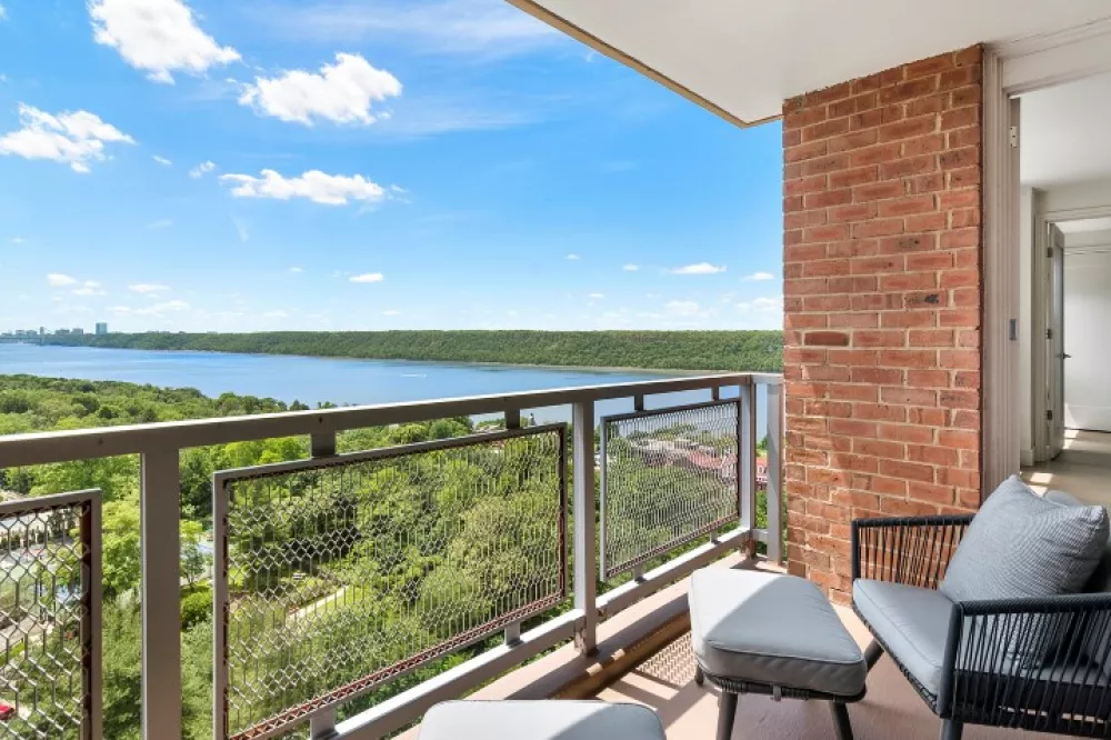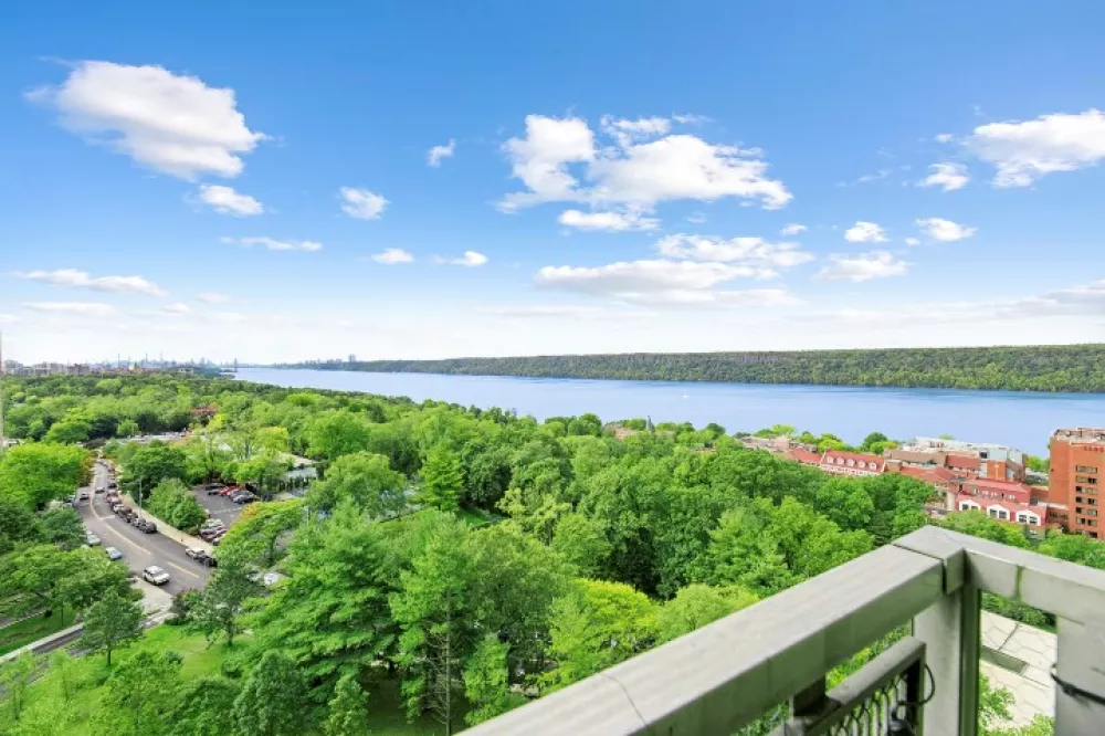Magnificent sunsets over the George Washington Bridge, NYC, Palisades and the Hudson River. This is a peaceful and spacious home offering three bedrooms, two baths with an outdoor terrace. The residence offers a serene and relaxed atmosphere the minute you open the door and enter the gallery. Love to entertain? The kitchen has plenty of cabinets for storage. Cook while enjoying the beautiful Hudson views. Granite counters, stainless steel refrigerator and dishwasher. The primary bedroom is oversized that can easily fit a king sized bed and more. Second bedroom is spacious with lots of natural light and views. Third bedroom can be used as a guestroom, gym, office, nursery or den. Hardwood floors throughout. Have breakfast, morning coffee or tea on your terrace and watch sunrises or dinner, wine or your favorite beverage and watch sunsets. Many windows throughout and all have water views with lots of light. Skyview on the Hudson is its own vibrant cooperative community located in Riverdale. The amenities include the Sky Club, a full service health club, Olympic-sized seasonal pool, kiddie pool, state of the art playground, basketball and tennis courts and dog park. (1 dog allowed) Pet friendly. All included in the maintenance. Residents also enjoy the convenience of Skyview shuttle service to Metro North and shopping, a Zip Car station, and easy access to public transit. Onsite indoor and outdoor parking is available to rent for an additional fee and residents receive yearly guest parking, pool and health club passes. EV charging stations available on the property. The Sky Club Cafe, open 7 days a week, offers breakfast, lunch and dinner, poolside service, home delivery and daily specials. The Sky Club hosts a variety of seasonal events, live music performances, movie nights, educational presentations, holiday parties. A BBQ area with picnic tables can also be used for parties for an additional fee. Cable and Internet $70 monthly charge. Close to shopping, restaurants and transportation. Historic Wave Hill is your backyard offering panoramic views, a Cafe and beautiful manicured grounds where you can relax on Adirondack chairs or enjoy the beautiful trees, lawns and flowers. Located less than 30 minutes from midtown Manhattan, Skyview in Riverdale offers easy access to Van Cortland Park, riding stables, golf courses, The Bronx Zoo and Botanical Gardens.