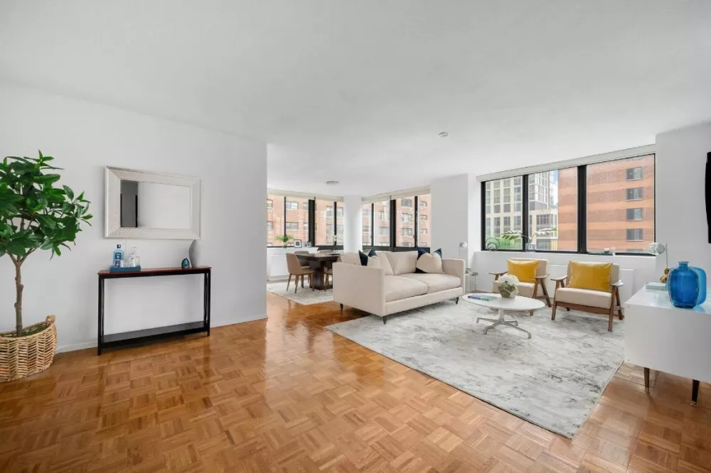 Welcome to Apartment 9D, a two bedroom, 2.5 bath home boasting South West views with floor to ceiling windows. A gracious entry foyer lined with a wall of closets and powder room introduce you this thoughtful, split bedroom layout. A jumbo sized living room flows from a large, separate dining room located... See more