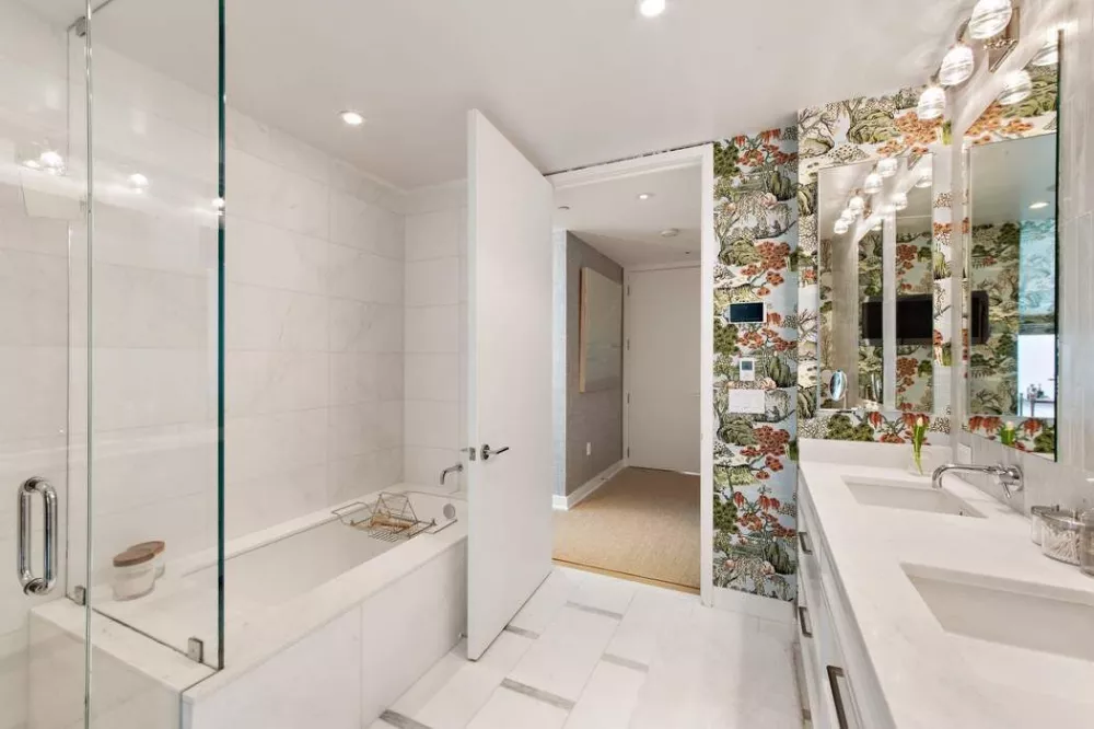 The oversized primary bedroom features a newly upgraded en-suite bath with custom cabinetry and marble countertops and flooring. Custom closets and millwork has been added to all three bedrooms yielding excellent primary and secondary bedrooms with maximum storage. 5" wide plank white oak floors run throughout the home, as well as an in-unit Bosch Washer/Dryer.