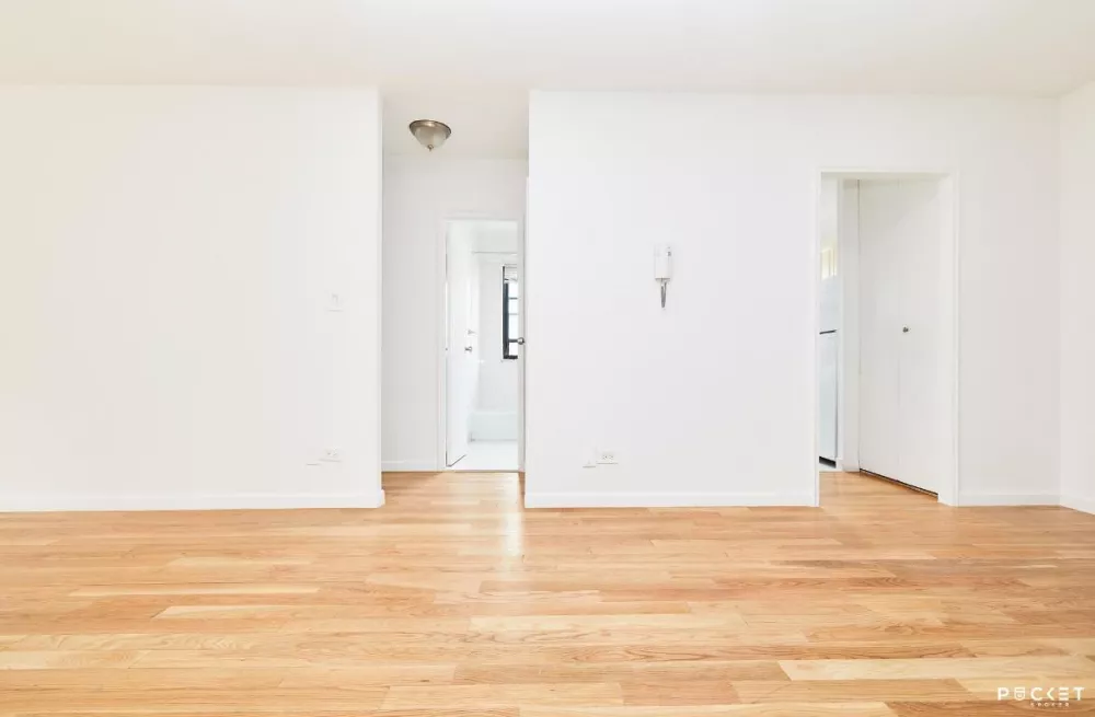 The living room is large and has a separate dining space off the kitchen. The apartment has beautiful strip hardwood floors and a private balcony.