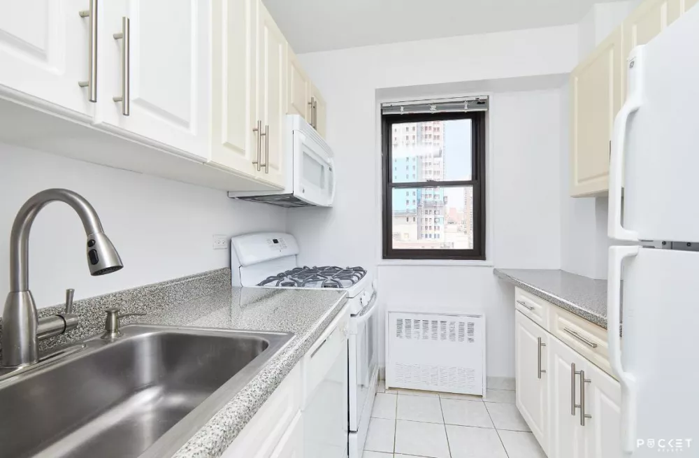 Both the kitchen and bathroom have windows with unobstructed views. The kitchen includes a dishwasher, microwave and full size stainless steel appliances.