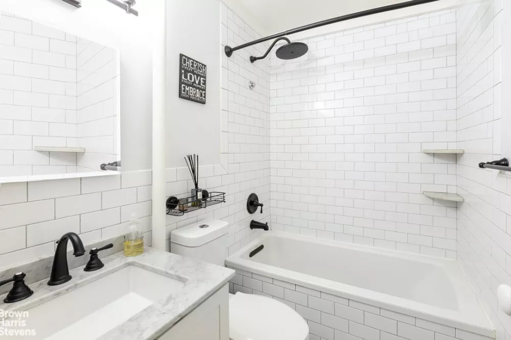 The home further boasts a luxurious new Kohler bathroom with deep soaking tub, a king-size bedroom with sunny southern exposures, a sizable entrance gallery, solid oak floors, and elegant prewar details including beamed ceilings, arched doorways, and casement windows!