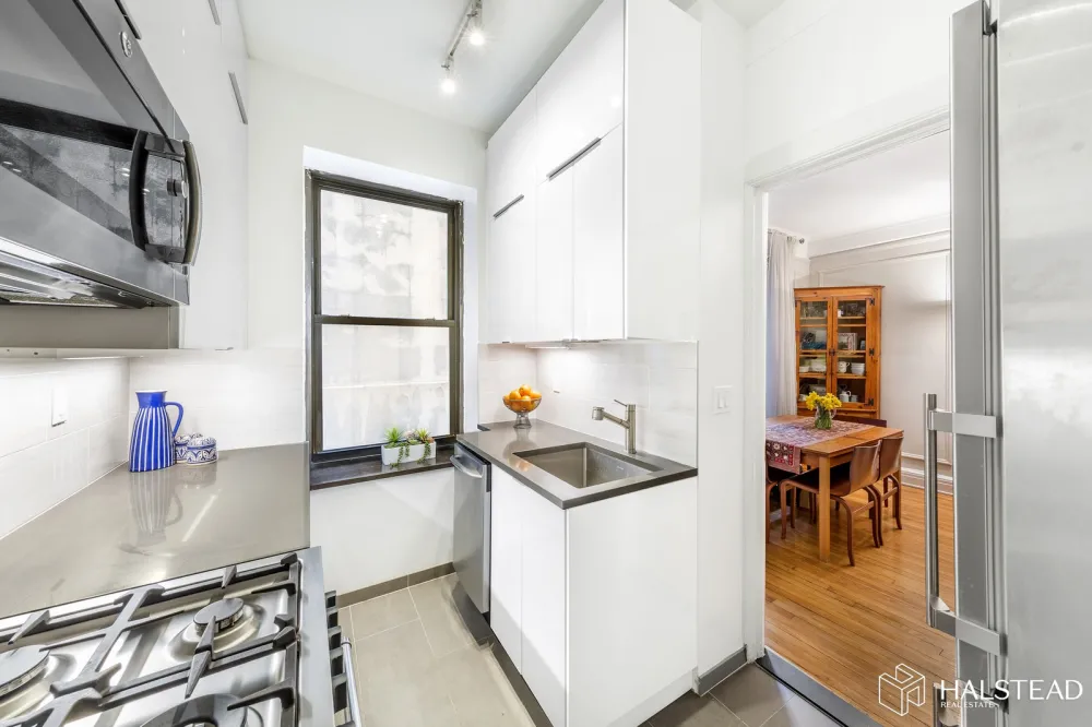 Wonderful 1 bedroom on West End Avenue in boutique pre-war cooperative. A large entry way with closet leads into the open dining/living area with expansive 9.5' ceilings. The kitchen is completely renovated with stainless steel Bertazzoni gas range, Liebherr refrigerator and porcelain tile floor. The... See more
