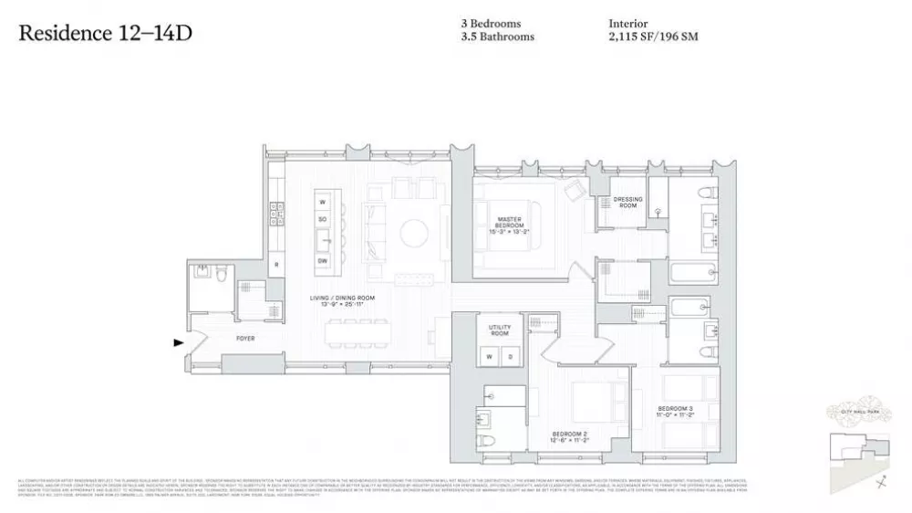 REDUCED TO SELL NOW!NOW 97% SOLD FINAL OPPORTUNITY.Immediate Occupancy This 2,115 SF three bedroom, three-and-a-half bath home offers sweeping views of historic City Hall Park and southeast views. AMAZING LIGHT IN ALL ROOMS.Fine finishes include wide plank Italian oak flooring, 9" decorative mouldings,... See more