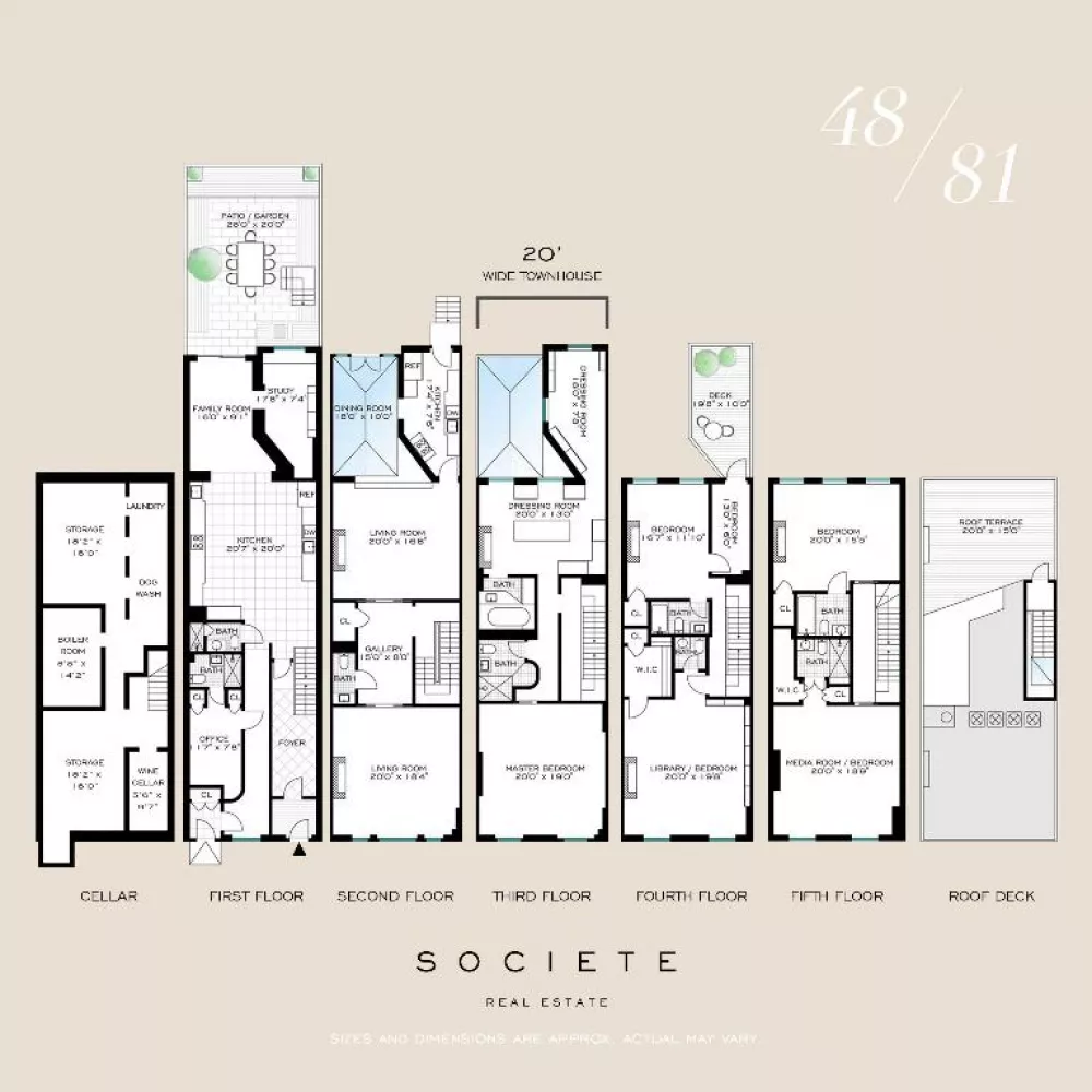 Five stories and 7,400 square feet, plus a full basement and roof-deck. Offers exclusivity and independence—free from condo board constraints. Personalize your space without bureaucratic hurdles. Five bedrooms—can be six, including a primary suite with a soft cream colored embossed alligator leather walls, as well as leather floors, two bathrooms and two closets. The closets replicate department store display quality and space. Seven full bathrooms, plus two half-baths. Two living rooms, two offices, and two kitchens, including a European gourmet chef’s kitchen and a butler’s kitchen on the entertaining level for convenience. The conservatory style solarium boasts leather and custom wood walls. The townhouse is turnkey — an option to buy fully furnished with brand-new designer pieces from B&B Italia.