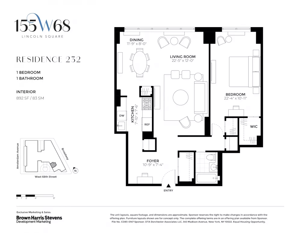 Exclusive Sales and Marketing Agent: Brown Harris Stevens Development Marketing. The complete offering terms are available in an offering plan from Sponsor. File CD83-0147 Sponsor: DTA Dorchester Associates LLC, 545 Madison Avenue, New York, NY 10022. Property Address: 155 West 68th Street, New York, New York 10023. Equal Housing Opportunity.