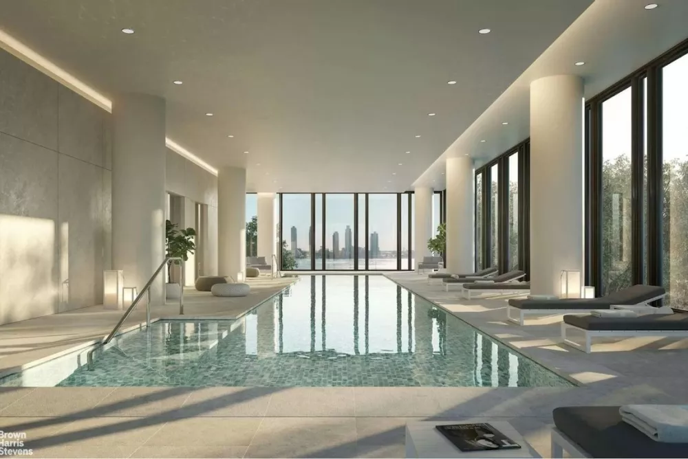 Designed by Brian Meier this building offers a truly elevated living experience, seamlessly blending luxury and convenience. With discreet direct entry from the onsite parking garage, residents enjoy effortless access. billiards and games lounge, catering kitchen, private dining area, screening The impressive amenities suite features soaring ceilings and abundant natural light, enhancing well-being. Highlights include a 70-foot indoor lap pool, steam and sauna rooms, and an expansive fitness center with a private training studio. Social and recreational spaces are thoughtfully curated, with a room, playroom, and an exclusive club lounge for residents
