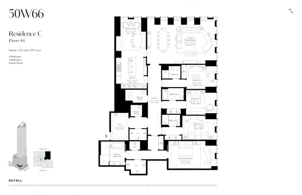 50 West 66th Street, slated to be one of the tallest and most important residential buildings that will transform the Upper West Side and the New York City Skyline. Extell's newest tower will have 127 ultra-luxury homes ranging from two bedrooms to full floors. The building boasts 50,000 square feet of amenity space including both an indoor and outdoor pool, squash court, full sized basketball and pickleball court, state of the art fitness center, Sky Lounge for entertaining and Porte cochere entrance.