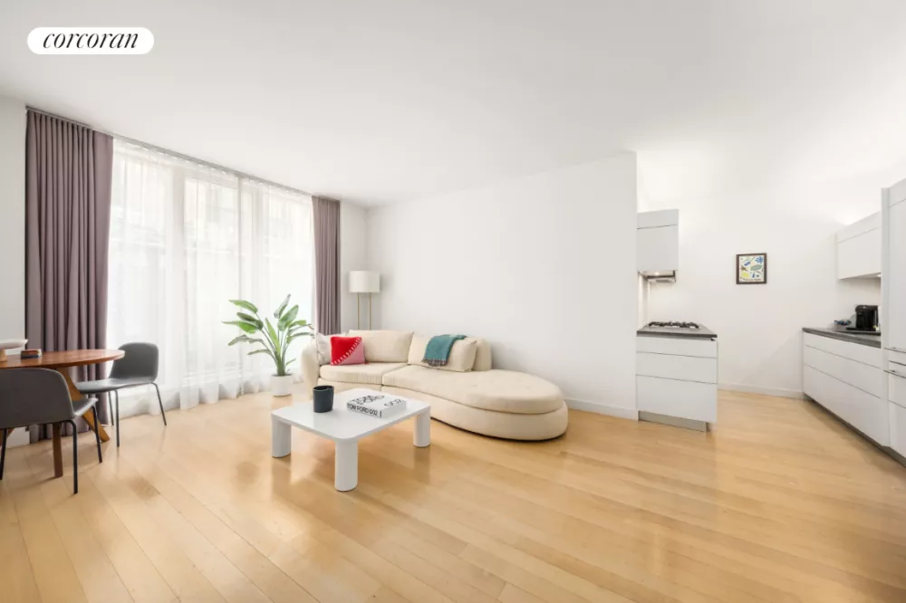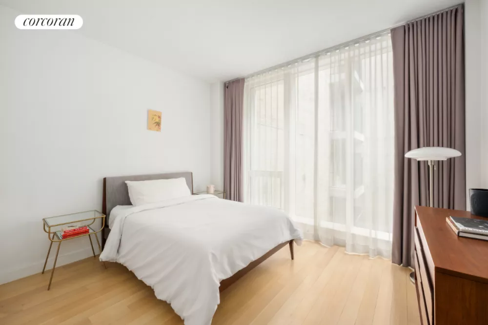 This spacious and airy 1 bedroom C home is the largest of the one bedrooms offered in the building and is in impeccable condition with modern and sleek finishes. Central heating/cooling, Radian bathroom floors and a W/D in unit. The high-end kitchen is perfect for entertaining and is equipped with Miele appliances and beautiful finishes throughout. The apartment also has high ceilings with floor-to-ceiling windows, filling each room with natural light. The bathroom has an enclosed glass shower, deep soaking tub, and radiant heated floors.