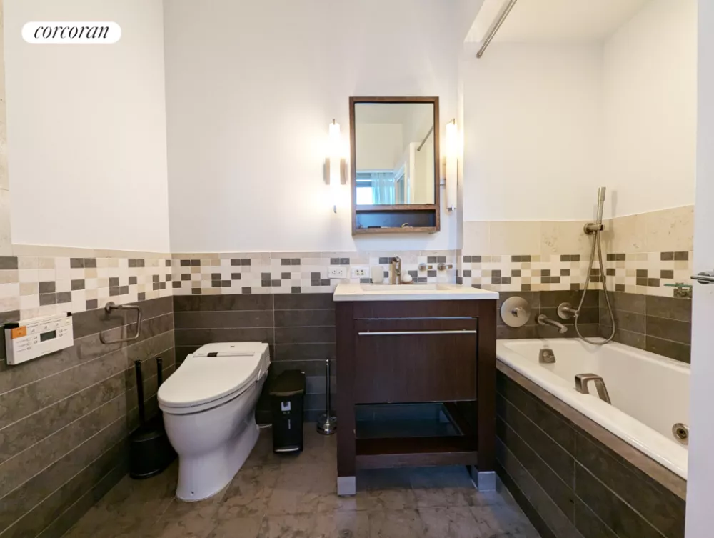 The desirable split-bedroom layout places the primary suite in the eastern wing, where you'll find a king-size bedroom, a large dressing area, excellent storage, and an en-suite bathroom with a soaking tub and separate rain shower. The secondary bedroom offers a roomy closet and easy access to a full guest bathroom with a large tub/shower. Central HVAC, an in-unit washer-dryer, and a private storage unit add wonderful convenience to this move-in-ready Chelsea sanctuary.