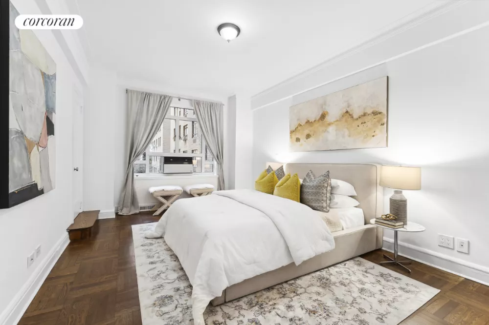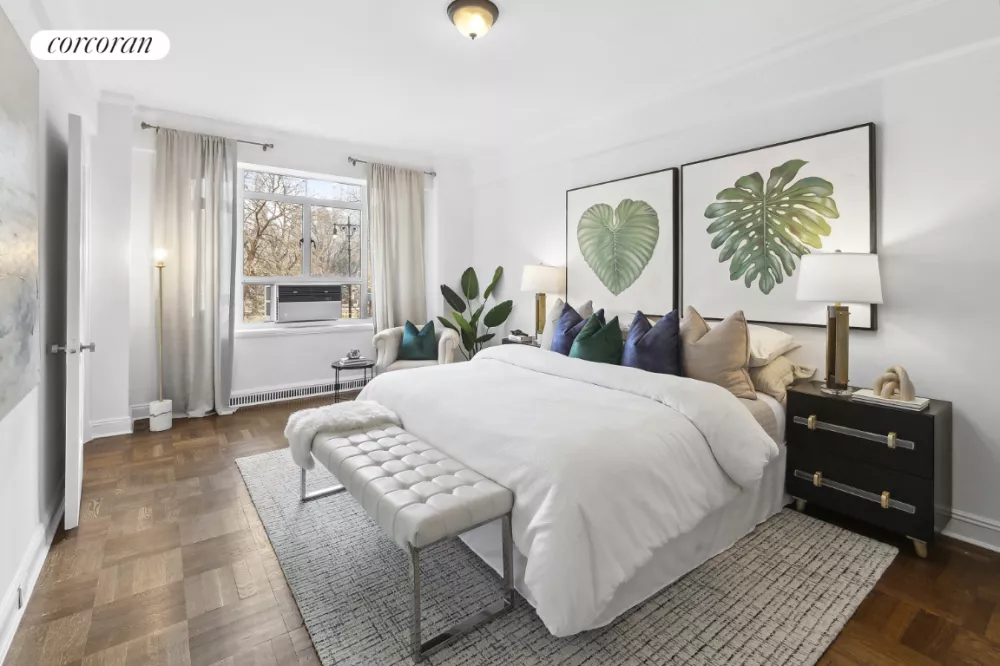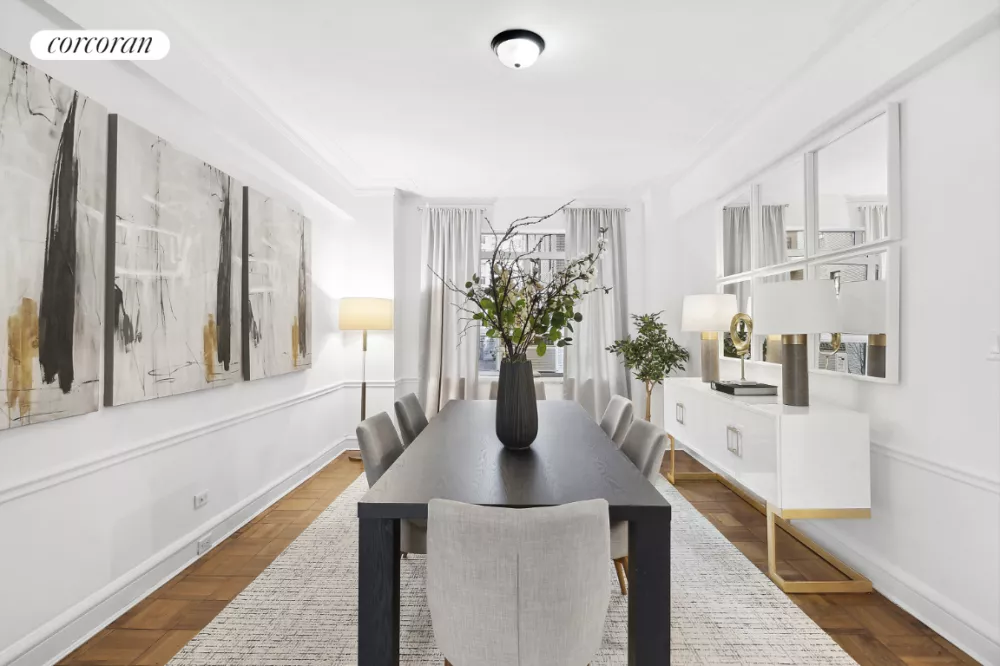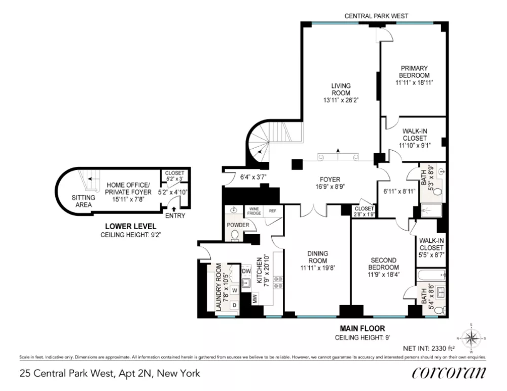 Welcome to Apartment 2N, a luxurious 2-bedroom, 2.5-bathroom residence sprawling across 2,330 square feet in the heart of New York City. This exquisite apartment features a grand foyer entry leading into an expansive layout. The highlight is a sunken living room with direct views of Central Park, offering an unmatched living experience. Each bedroom comfortably fits a king-size bed and boasts large walk-in closets. The apartment also includes a formal dining room, which can be converted into a third bedroom. A windowed kitchen adjacent to the dining area showcases marble floors, high-end Viking and Sub-Zero appliances, and a wine fridge. Added conveniences include a windowed in-unit laundry room with full-size LG washer and dryer.