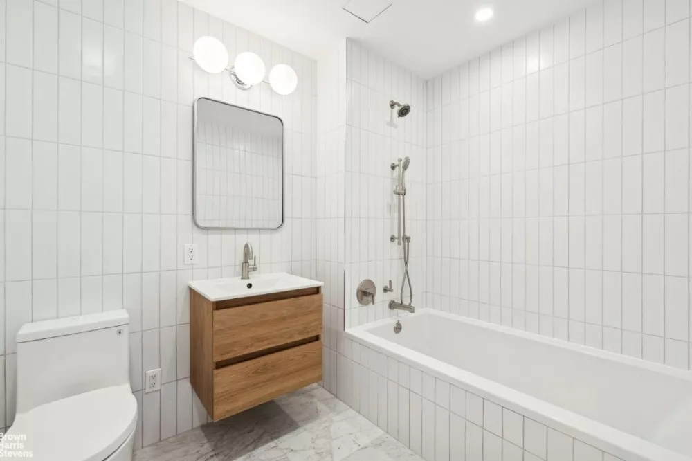 The striking facade of German-engineered textured thin brick captivates the eye at the corner of Prospect Place and Underhill Avenue, setting the tone for the refined aesthetic that awaits within. Step into the contemporary lobby and common spaces, adorned with porcelain floor tiles and bathed in natural light streaming through oversized European-style windows. A package room with a refrigerator ensures seamless deliveries.