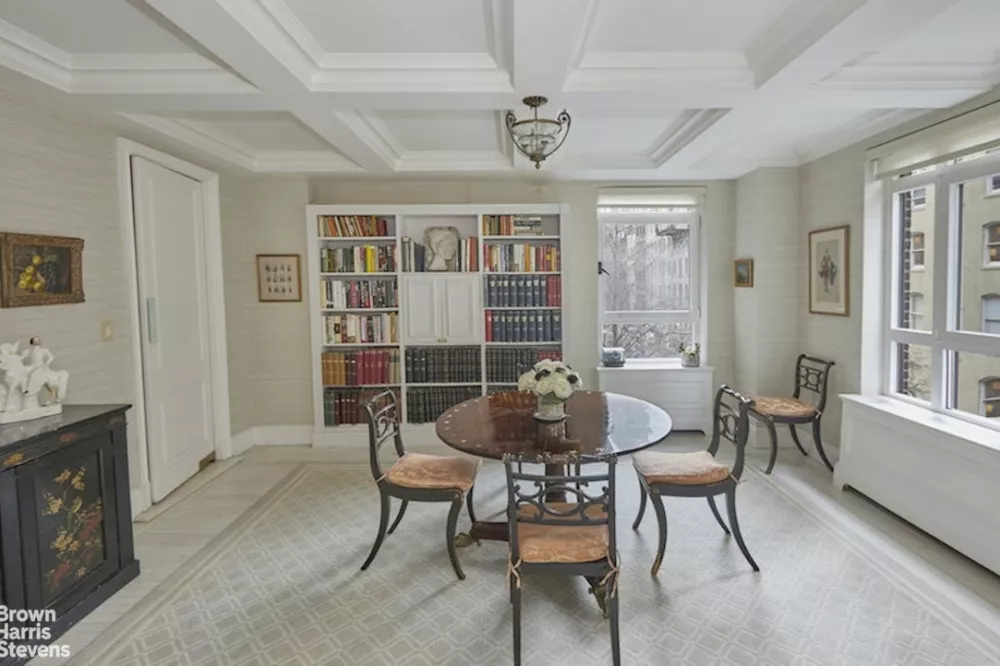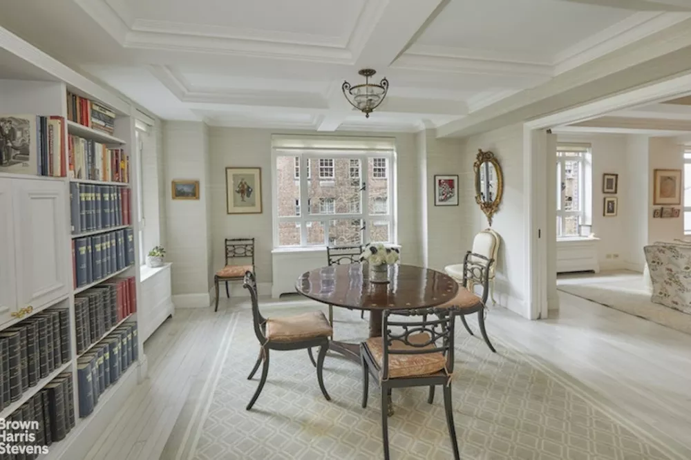 The apartment's spacious foyer leads to a large living room flanked by a formal dining room and a cozy library; all of which look upon tree-top views of Beekman Place. There are three quiet, well-proportioned bedrooms in the private wing of the apartment.