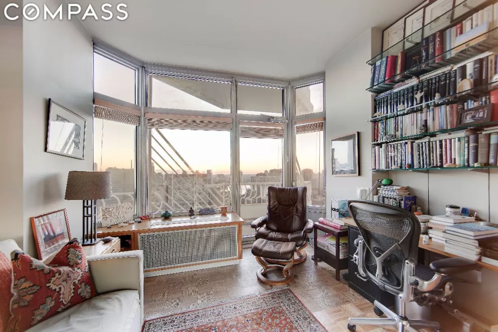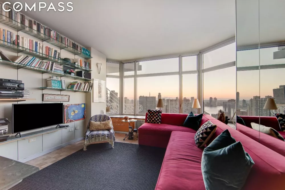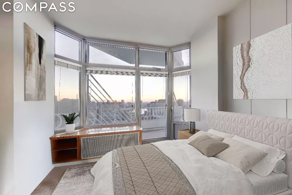 Perfectly appointed on the 29th floor, the apartment welcomes with soaring 10’ ceilings, parquet wood flooring, built-in storage, thoughtful shelving, and luminous windows facing East & South. Fashioned for easy furniture arrangement, the spacious living room is ideal for entertaining. Envision hosting parties in this intimate space, while the glittering lights of the Big Apple offer a memorable backdrop. For an even better outlook, bask in the balcony’s view of SIX bridges.