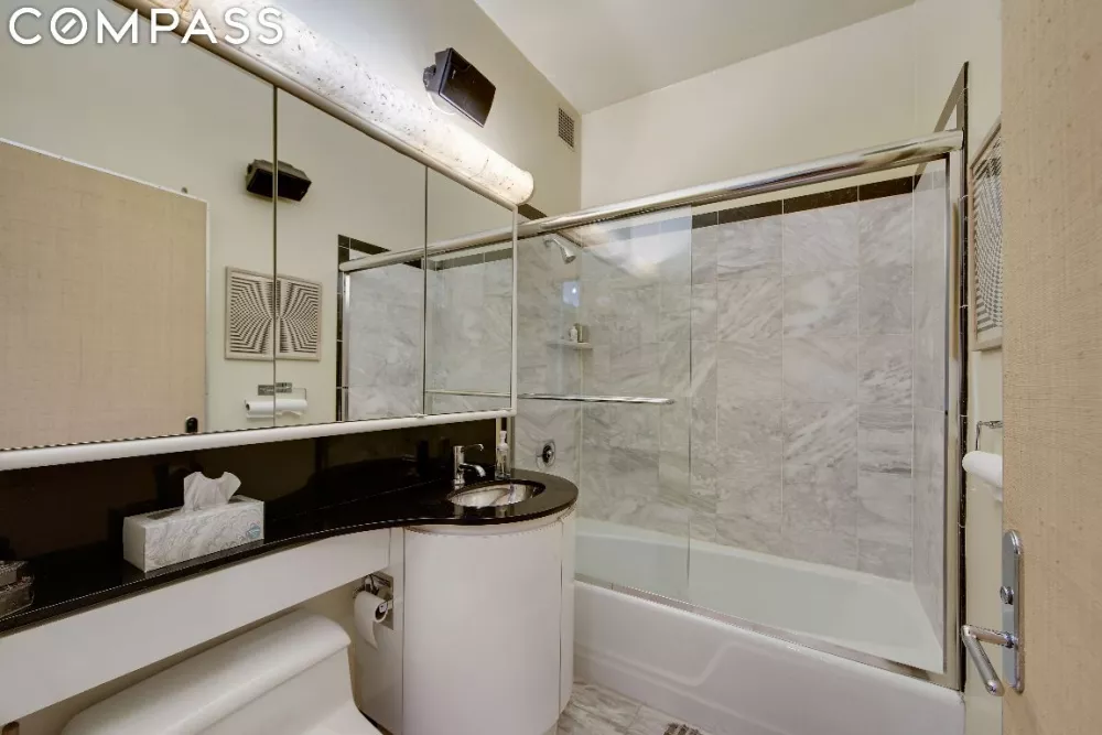 To top off this rarely-available apartment, the full bathroom boasts a shower/tub combo, granite countertops, and a large mirrored medicine cabinet.