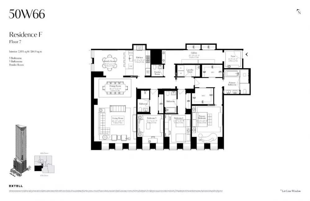 House residence 7F is a gracious 2,851 square foot, 3-bedroom 3.5 bath home. This South West facing apartment can be shown by private appointment. Closings Commence 2025.
