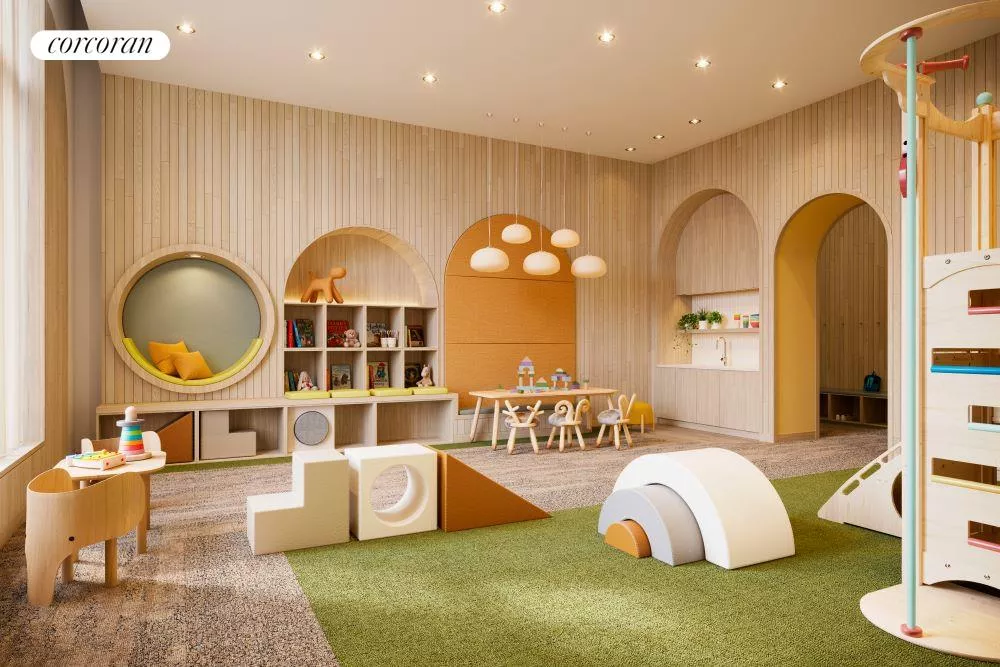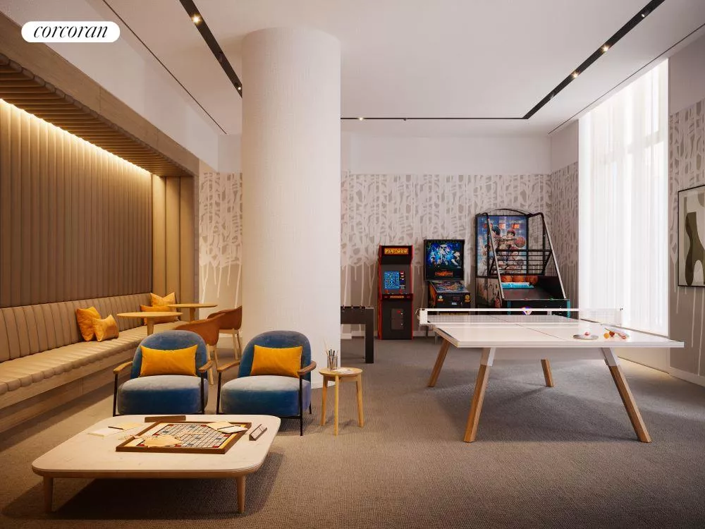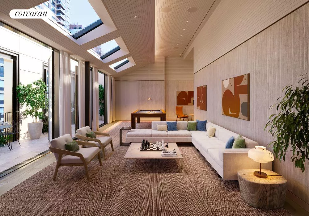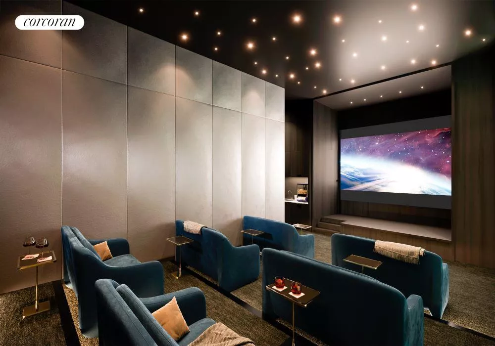 Residents will enjoy access to The Sutton Club, five light-filled floors of private amenities with spaces dedicated to relaxation, fitness, healthful living, entertainment, and recreation. They include a lap pool and whirlpool, a fully equipped gym with dedicated areas for boxing and barre, a personal training studio, infrared saunas, a spa treatment room, a resident lounge and terrace, a private dining room and chef's demonstration kitchen, a screening room, a golf simulator/ virtual sports room, a game room, an artful children's playroom, and a serene ground-floor sculptural garden with reflecting pool.