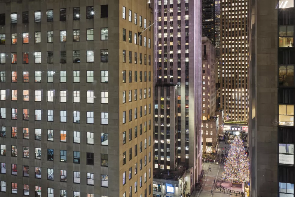 Enter through the spacious foyer, complete with a large coat closet, and into the expansive living and dining area. The grand living and dining room features floor-to-ceiling windows, and offers rare, direct views of Rockefeller Plaza -- especially delightful during the December holidays!