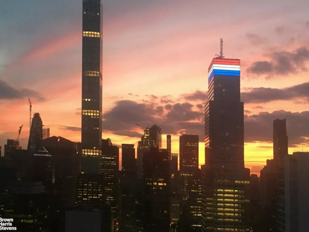 Perfeсtіon iѕ thе οnly wаy tο describe this apаrtment! Ιt is absolutely gorgeous and combines magnificent design with practical utility. It overlooks all of New York City from the 46th floor. One sees North past the George Washington Bridge, West over all of Central Park, East over the East River, Park and South toward the Chrysler Building and the Freedom Tower. The apartment was designed by a well known architect who created walls and woodwork to resemble the skyscrapers of New York City. When the lights are on, the glass within the wood portrays windows and one feels as if they are peering into the hidden life of the City. The beautiful plank floors and sparkling counter tops are a joy to observe. The apartment consists of a huge Living Room, Dining Room, Primary Bedroom and Den with sliding doors. When they are closed a large 2nd Bedroom is created. There are 2.5 gorgeous Bathrooms, a huge open Kitchen, a Washer/Dryer and new soundproof picture windows. The Central A/C is hidden within beautifully designed cabinets. The large Terrace faces Northeast and is quite usable. It is located on Billionaire's Row, public transportation, wonderful shopping and luxury living. The building has 24 hour concierges and doormen. There is a 20,000 square foot Spa with classes, trainers and an indoor/outdoor salt water Pool and a 24 hour Garage. Pets and pied a terres are allowed.