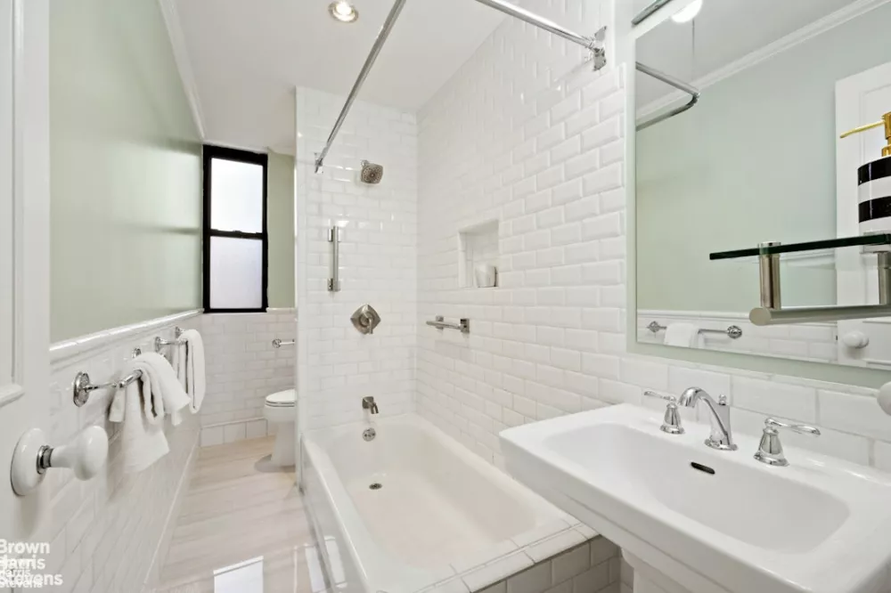 The oversized, south-facing primary bedroom is a serene retreat with stunning south views of the Hudson River and Riverside Park. The second bedroom is also generous in size, easily accommodating a king-size bed and additional furniture. The windowed bathroom is in wonderful condition, blending modern finishes with prewar character.
