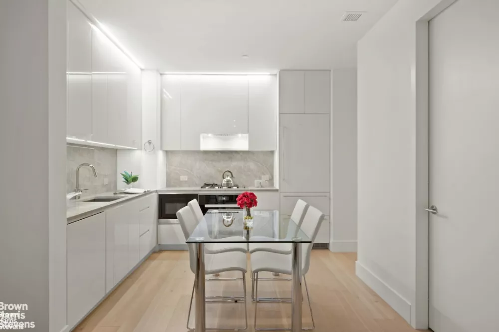 Step into a space that seamlessly combines style with functionality. The studio boasts 10" high ceilings that create an open, airy ambiance, enhanced by wide plank white oak floors. The beautifully appointed kitchen is a cook's dream, featuring a top-of-the-line Miele appliance package, including a 4-burner gas range, integrated paneled dishwasher, quartzite countertops, and soft close doors and drawers. Every detail has been thoughtfully designed to ensure both beauty and practicality.