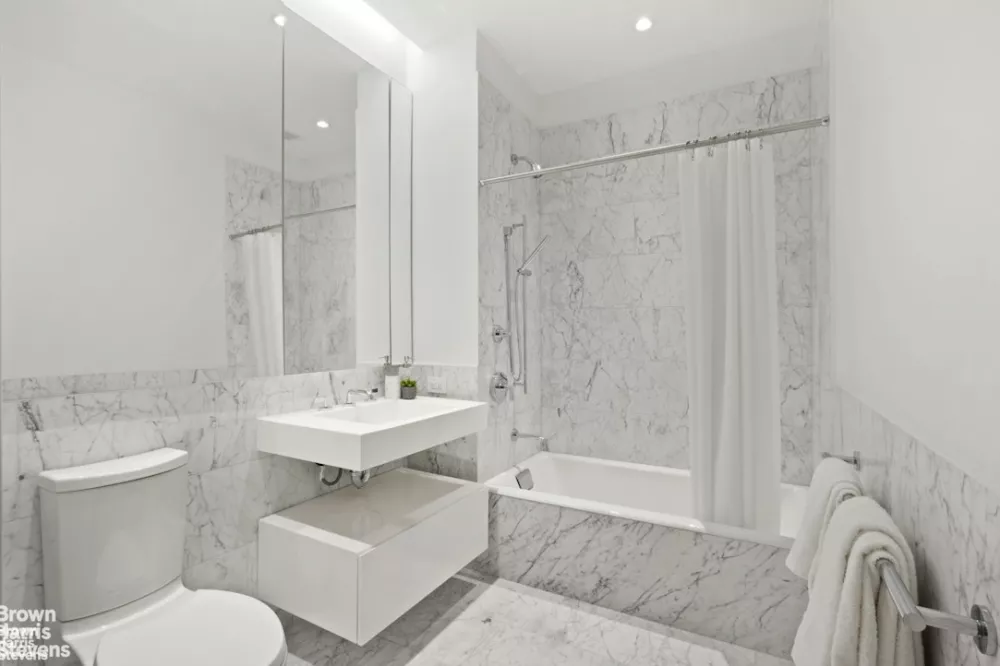 The oversized bathroom is enhanced with Kohler fixtures. Additional apartment features include an externally vented washer and dryer, an enormous walk-in closet and central heat and air.