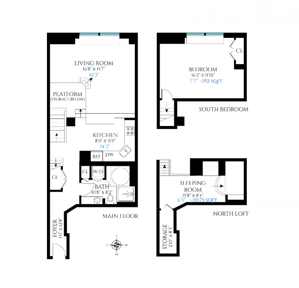 Nestled in the highly desirable West Village, this south-facing loft offers a unique and versatile layout with a charming treehouse-like ambiance. The main level features a spacious living room with double-height ceilings, original hardwood floors, and large windows that flood the space with natural light, evoking a serene, elevated retreat.