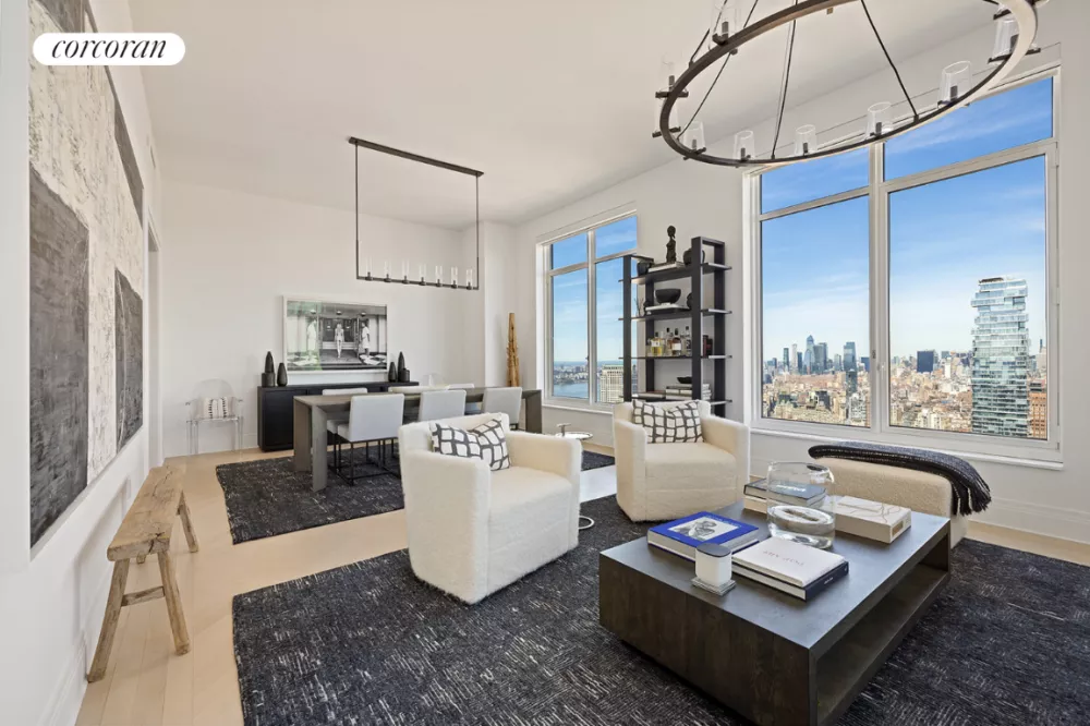 Welcome to the Four Seasons Private Residences! This home sits on the northeast corner enjoying sweeping views of the Midtown skyline and East River. A windowed Eat-In Kitchen complements the Living/Dining Room. The Primary Bedroom Suite features 2 exposures, generous closet space, and a 5-fixture bathroom.... See more