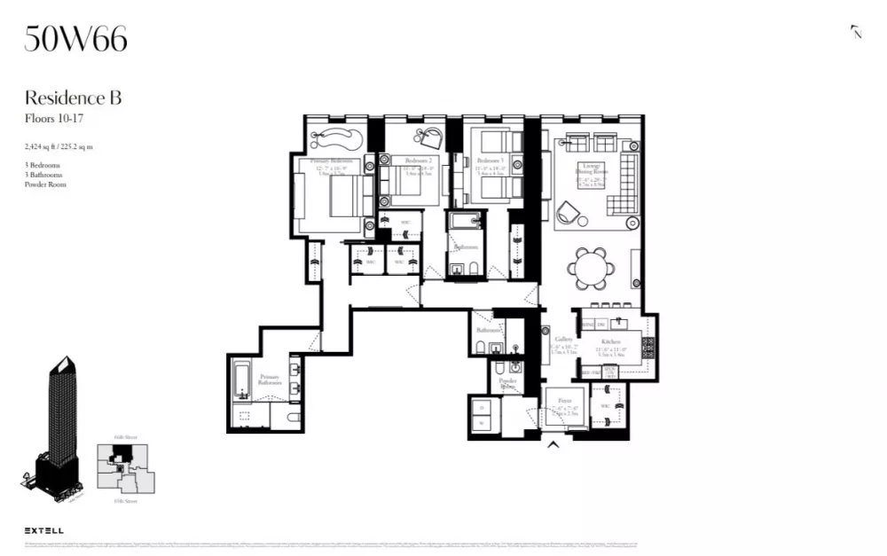 50 West 66th Street, slated to be one of the tallest and most important residential buildings that will transform the Upper West Side and the New York City Skyline. Extell's newest tower will have 125 ultra-luxury homes ranging from two bedrooms to full floors. The building boasts 50,000 square feet of amenity space including both an indoor and outdoor pool, squash court, full sized basketball and pickleball court, state of the art fitness center, Sky Lounge for entertaining and Porte cochere entrance.