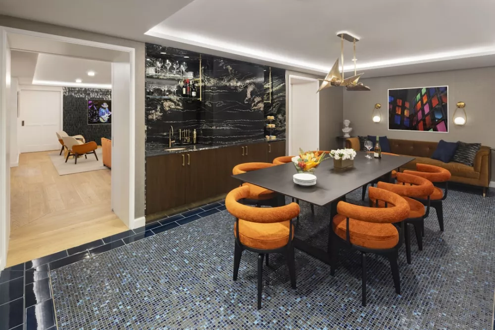 With the privacy of an in-house club, 393's amenity suite is crafted with an artistic touch, each room is thoughtfully designed to feel like an intimate extension of the home. Jewel-tone colors and rich texture are counterbalanced by a lightness in style.