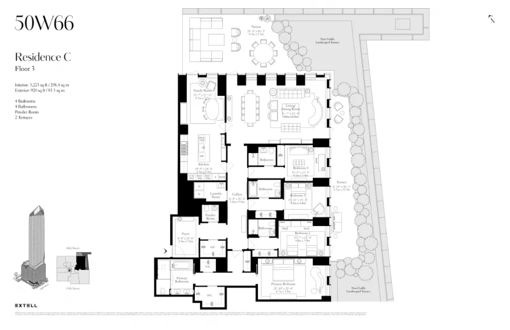 50 West 66th Street, slated to be one of the tallest and most important residential buildings that will transform the Upper West Side and the New York City Skyline. Extell's newest tower will have 127 ultra-luxury homes ranging from two bedrooms to full floors. The building boasts 50,000 square feet of amenity space including both an indoor and outdoor pool, squash court, full sized basketball and pickleball court, state of the art fitness center, Sky Lounge for entertaining and Porte cochere entrance.