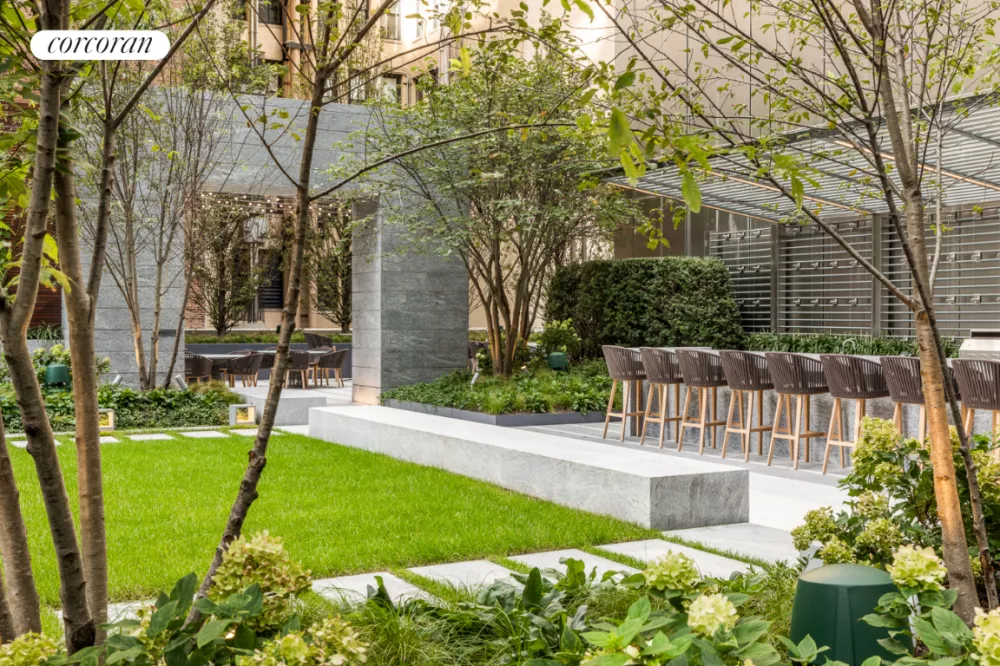 The Club features an expansive, outdoor landscaped Terrace, a 60-foot saltwater pool, and an outdoor movie theater with bar and grill. Indoor recreation amenities include a sunlit saltwater lap pool and hot tub, a double-height windowed sports court, and a high-tech fitness center. Restorative treatments are offered at The Club's spa, with both steam and sauna. The Club features a private screening room, a business center, and The Living Room residents lounge with soaring ceilings, billiards, and comfortable areas for relaxing and hosting.