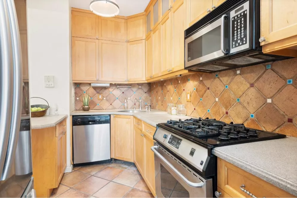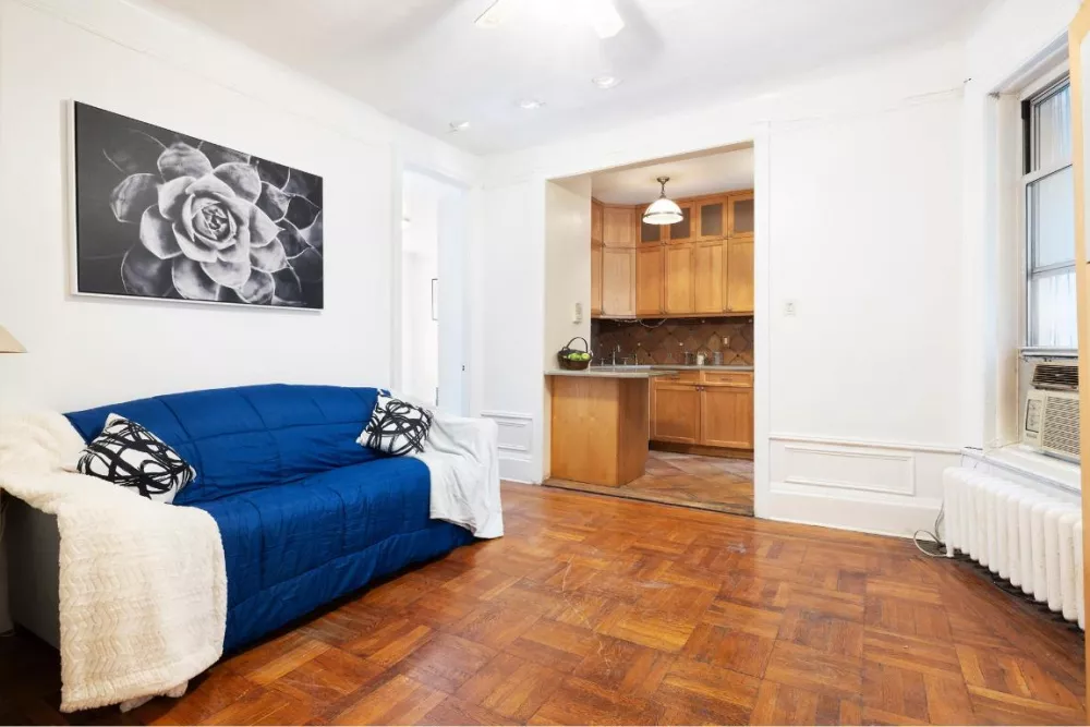 Nestled in the heart of Chelsea, this 2-bedroom co-op offers both comfort and convenience. The sizable kitchen is a culinary enthusiast's dream, featuring an abundance of cabinets, a double-door fridge, and ample counter space. Take a moment to savor a quick bite while perched at the kitchen peninsula. The second bedroom presents a versatile space that can easily transform into a home office. Built-in shelving provides a perfect solution for organizing business essentials or displaying personal knick-knacks. In the living room, relaxation takes center stage. Unwind and enjoy your favorite TV shows in comfort. When it's time to dine, the space around the table invites you to savor meals with ease. The primary bedroom offers a serene escape, with sunlight coming through the windows. Peaceful trees through the windows create tranquility and restfulness that define this space.