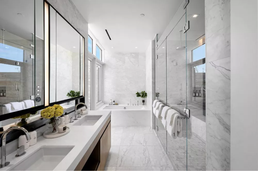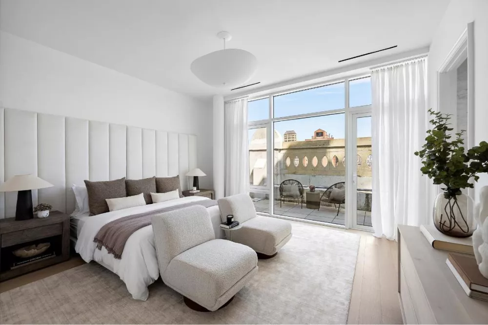 Nestled within the esteemed Crown Collection of 108 Leonard, Penthouse 15B offers 3 bedrooms plus a den and over 1,000 square feet of outdoor space across two stunning terraces. Seamlessly blending character with opulence, this Penthouse caters to both grand gatherings and intimate living within its contemporary, light-filled confines. Upon entry, a welcoming foyer unfolds into an expansive great room spanning an impressive 59 feet, bookended by a south-facing terrace of equivalent length. A marble fireplace serves as the focal point, mirrored by its outdoor counterpart on the terrace. Floor-to-ceiling glass panels and nearly 11-foot lofty ceilings flood the interiors with natural light, while every room offers access to terrace space, seamlessly merging indoor and outdoor living. The meticulously appointed Chef's kitchen showcases Scavolini cabinetry, exclusively crafted by Jeffrey Beers International for 108 Leonard. A striking Calacatta marble island, countertops, and backsplash create a captivating centerpiece, complemented by premium Miele appliances including a 5-burner gas cooktop, vented hood, a combo steam-convection oven, and espresso machine suite. The Primary Suite features dual walk-in closets, floor-to-ceiling windows, and a lavish en suite bath adorned with high-honed floor to ceiling Calacatta Mandria including a book-matched black marble accent wall, and features a glass shower with 6 fixtures, a custom double vanity finished with Fantini chrome fixtures, a large soaking tub, Toto toilet, and radiant heated floors. Each of the secondary bedrooms have their own en suite baths and access to the terrace, and a dedicate laundry room complete with a utility sink and vented W/D adds to the home's luxury. Meticulously restored by Jeffrey Beers International, 108 Leonard pays homage to its architectural heritage while embracing contemporary luxury. Residents enjoy access to three attended lobbies, valet parking, and over 20,000 square feet of wellness amenities including a 75 ft lap pool and spa.