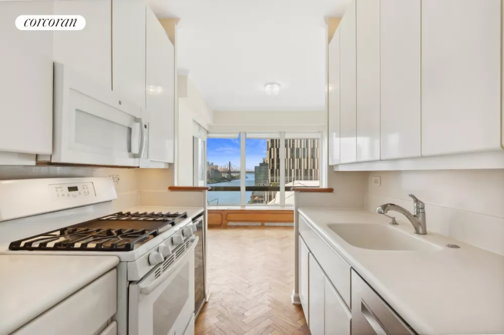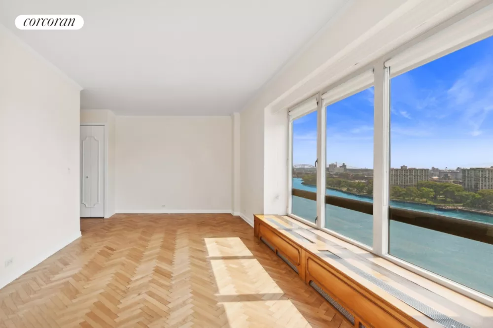 Enjoy Amazing water views from your corner two bed two bath with sunny south and east exposures. Panoramic views from the wall of oversized windows overlooking the East River, large balcony- that has just been redone (71 Sq ft) easily fits a table and chairs (perfect to watch the sunrise and sunsets), plentiful closet space including a walk-in closet in the primary bedroom, oak floors, marble bathrooms. The spacious primary ensuite bathroom features a standing shower and separate bathtub. This apt needs TLC. The second bedroom is ideally suited for an Eat-In kitchen or an office. The Promenade is a luxurious full-service Condominium with 24 hour concierge, garage, doormen, porters, handymen, live-in super, children's playroom, roof garden, outdoor jogging track, roof top business/conference room, storage rooms, cleaning and dry cleaning services, bike room and a large lounge/ party room on the top floor (with its stunning river views and its own kitchen & bathroom) that is available for residents' private parties. Common charges include your use of the brand new fully renovated health club and gym, top floor heated swimming pool, saunas, steam rooms, massage rooms, fitness & meditation classes. Steps away from John Jay Park. There is also an ongoing capital assessment of $302.52/month for this apt. Please note- The building just renovated the balcony of this apt. See less
