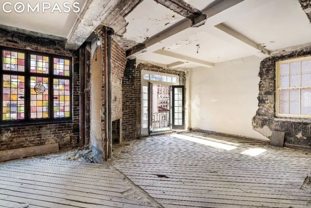 Introducing a private keyed-entry full-floor Penthouse in a Landmark Building off of Park Avenue. Bring your architect to renovate an over 2350 sqft masterpiece with 360 degree views through spectacular windows. This gutted, clean-slate property is ready for your unique vision and conveys with approved plans, air rights and $250,000 of LPC-approved work already completed on new windows, including restoration of the original stained glass windows depicting the four seasons.