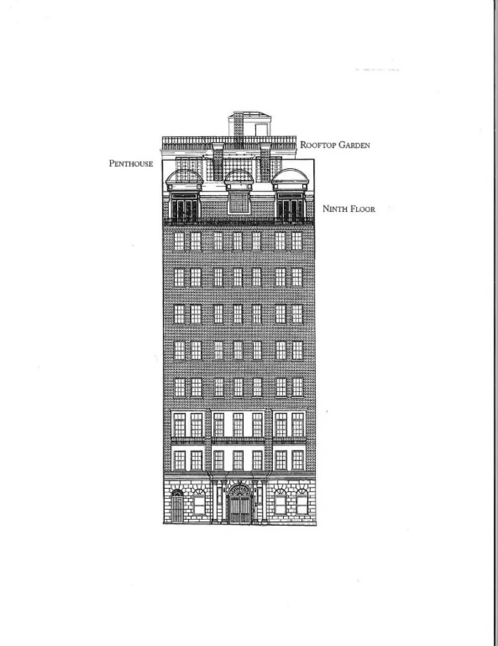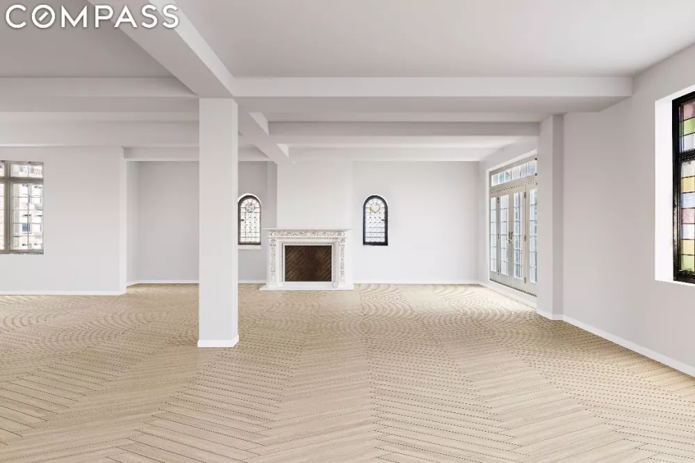 There are a variety of plans but one example calls for a gracious foyer that opens to a grand open concept living room and den. Both are flanked by a wood-burning fireplace and Juliet balconies framing south-facing views that stretch over historic Park Avenue landmarks to the Empire State Building. This level calls for 3+ spacious bedrooms including a primary ensuite. Sweep back around through the foyer to rear of residence that opens to an open kitchen, private dining, guest bedroom and additional bath.