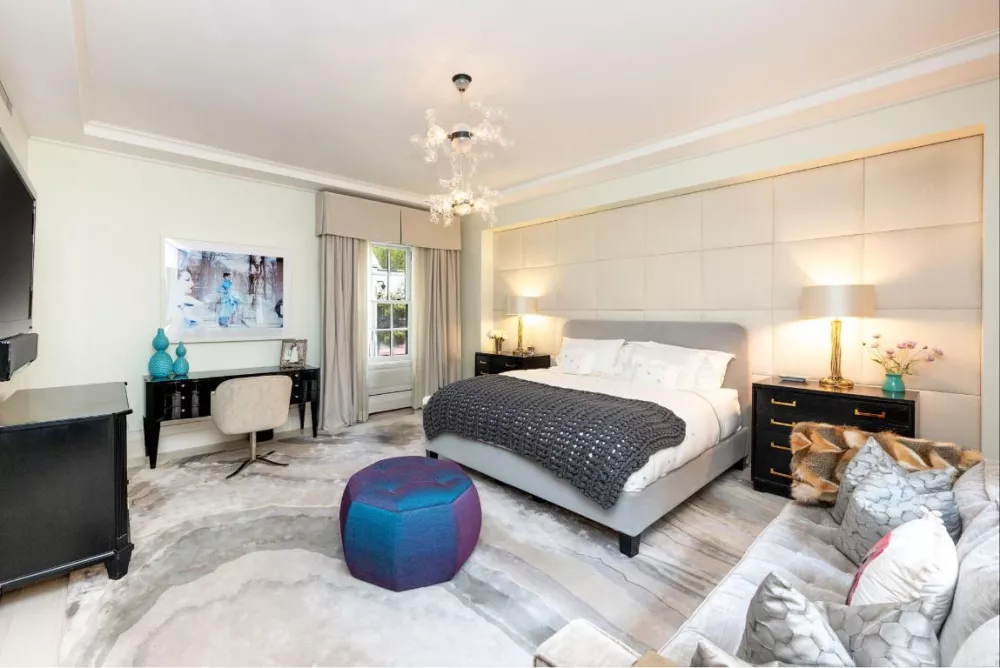 The private bedroom wing includes five generously sized bedrooms, with three en-suite bathrooms, all adorned in classic white marble. There is more than ample closet space making this the perfect oasis. This luxurious home also features lacquered doors throughout, a full-size washer/dryer, multi-zoned central air conditioning, and beautiful hardwood floors.
