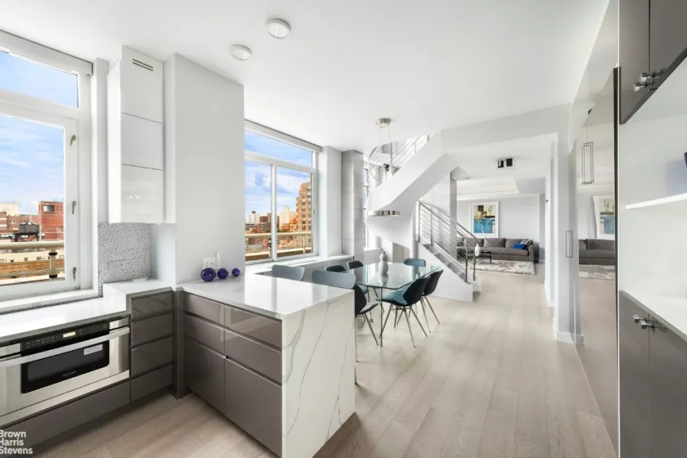 Penthouse Perfection! Meticulously renovated, no expense spared, and designer styled! This is ultra luxury living at its finest! This modern duplex Penthouse opens to a wall of windows including skylights in the living room. The lower level boasts a beautiful  kitchen with custom cabinetry, high end appliances and white/gray Quartz countertops. The dining are easily seats 8 and there is a hidden murphy bed for those extra nights of needing additional sleeping accommodations. The living room is very generous in size  and has views of the GWB and the Hudson River. Modern recessed lighting and cove lighting achieve different types of mood settings. Access to the 250 sqft terrace, running the full length of this home, is an amazing bonus. The spacious terrace has so much  space for dining, lounging and even grilling (electric!!). The powder room finishes off this floor. Scale up the beautiful curved staircase to the upper level where the two bedrooms with ensuite baths are located. The primary bath has two vanities and a gorgeous  walk in shower. The second bath has a tub/shower combo and this bedroom easily holds room for two. New floors throughout, built-ins along all windows and great outfitted closets complete this amazing opportunity to call the Boulevard your home. The Boulevard  is a Luxury Condop (coop with condo rules) conveniently located on the corner of 86th and Broadway. Transportation, Fine Dining and Shopping including the new Keyfood one block away! Free membership into the famous Club Boulevard and the unparalleled level  of service provided here is what sets this building apart from all others. Building amenities: An amazing State-of-the-Art Fitness Center with all recently upgraded cardio and non-cardio equipment, a 75' heated-lap saltwater pool, professionally instructed  classes, squash, racquet & basketball courts, men and women's steam rooms & saunas and separate boxing area. The playroom is a wonderful windowed wonderland for the masses. To complete this luxurious package there are 4 outdoor decks, rooftop solarium with  WiFi, duplex party room and onsite parking garage. Investor friendly too! Life at the Boulevard is truly a dream.