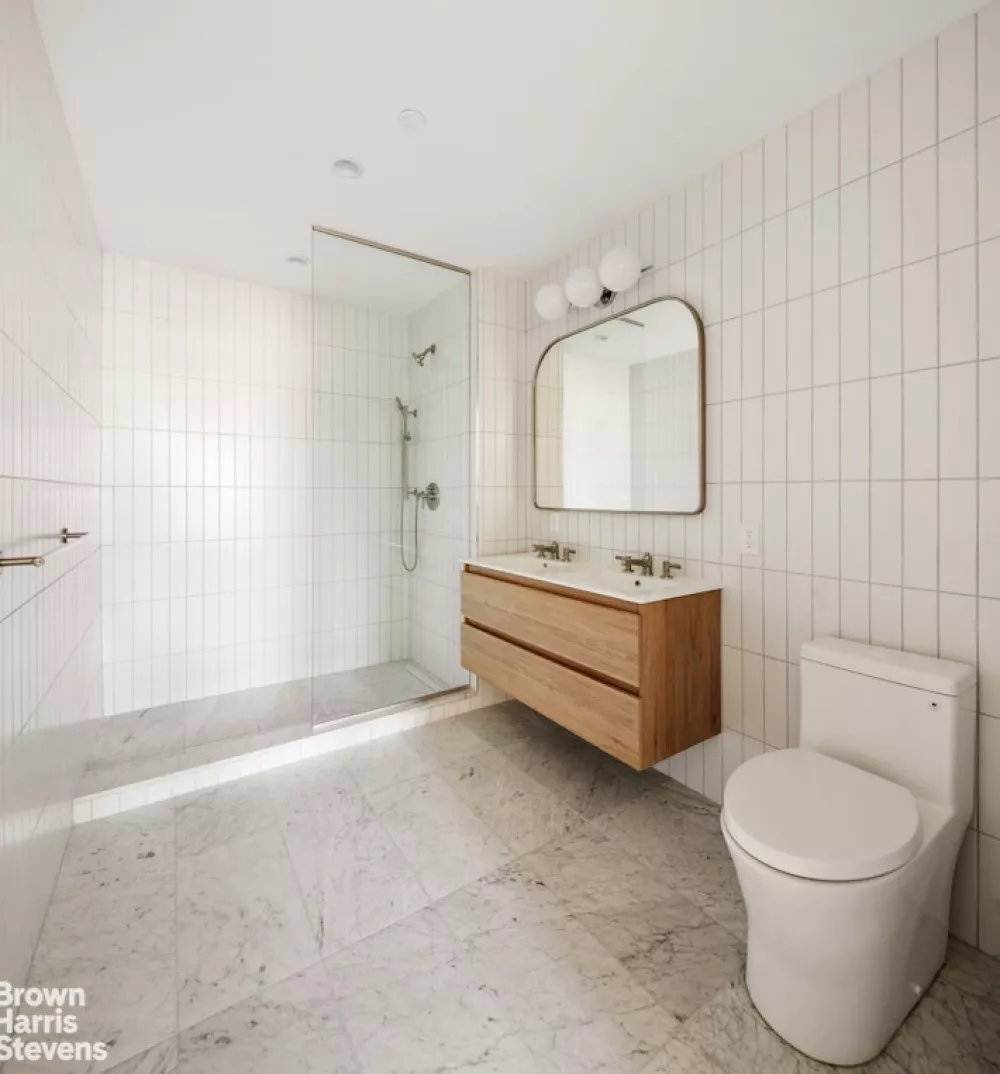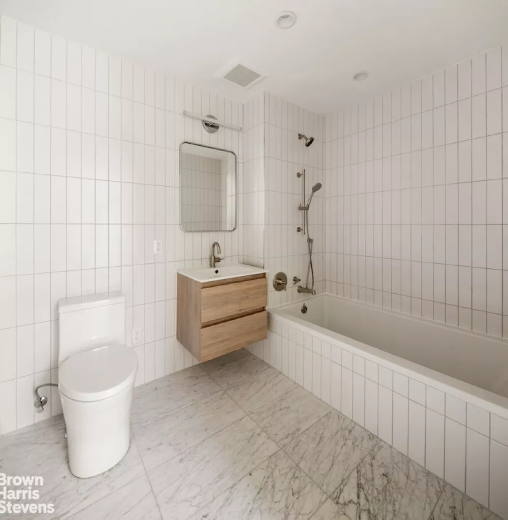 The striking facade of German-engineered textured thin brick captivates the eye at the corner of Prospect Place and Underhill Avenue, setting the tone for the refined aesthetic that awaits within. Step into the contemporary lobby and common spaces, adorned with porcelain floor tiles and bathed in natural light streaming through oversized European-style windows. A package room with a refrigerator ensures seamless deliveries.