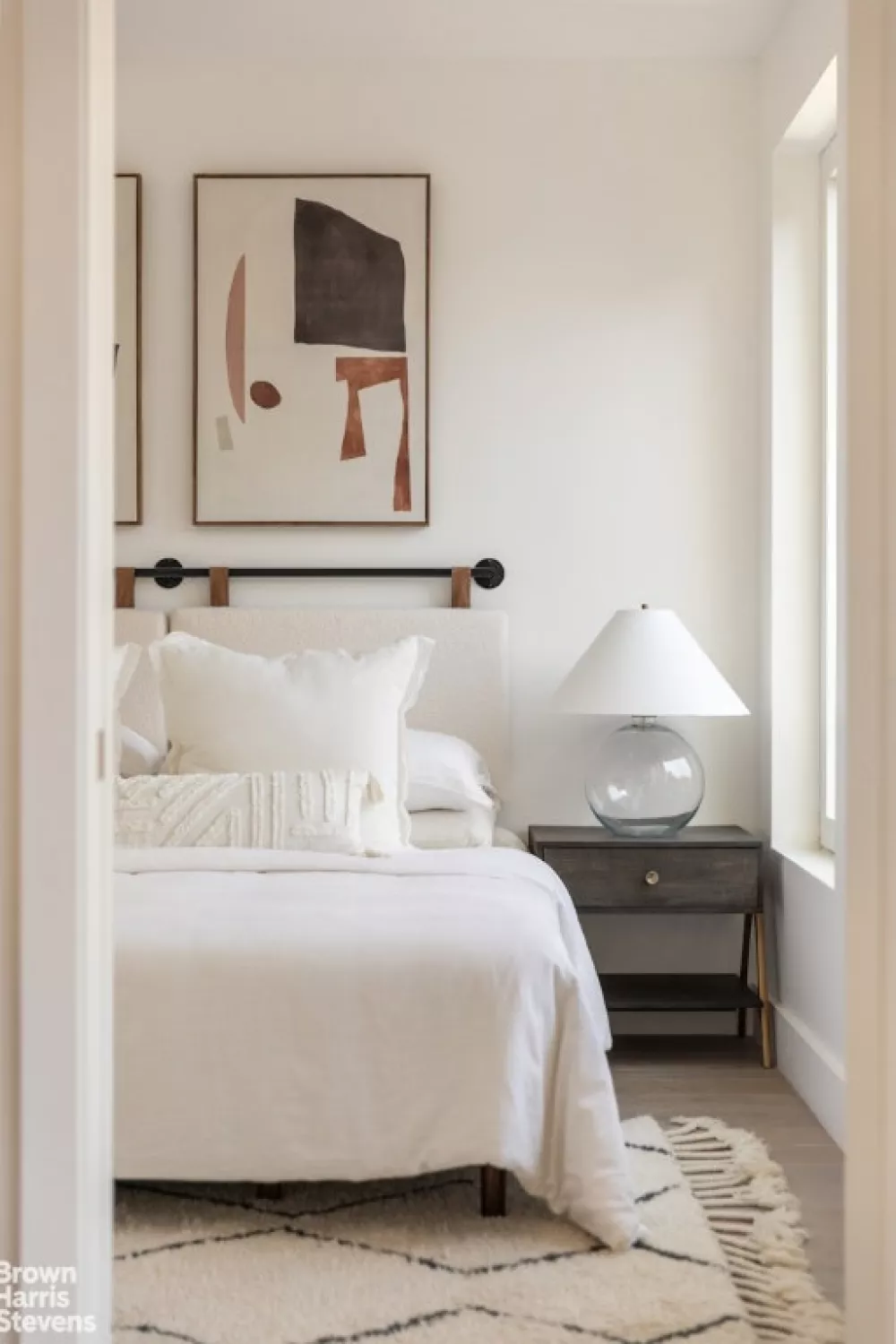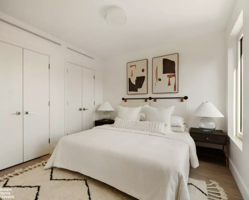 Penthouse B epitomizes luxury living, boasting European white oak engineered wood floors and surface mount bedroom light fixtures that accentuate the modern ambiance. On the main floor, the gourmet kitchen is a culinary enthusiast's dream, featuring white quartz countertops, painted wood shaker cabinetry, and panel-ready appliances seamlessly integrated for a sleek aesthetic. Enhancing the culinary experience, a ceramic farmhouse sink and under counter wine cooler cater to the most discerning tastes, while top-of-the-line appliances including a Liebherr 36" refrigerator and freezer, Bertazzoni induction range, and Bosch fully-integrated dishwasher elevate every meal preparation. The expansive living/dining space provides the perfect backdrop for entertaining guests or simply unwinding in style while an adjacent bedroom can function as an extension of your living space. Both the bedroom and living room open up to a huge private terrace that expands the possibilities of indoor/outdoor living.