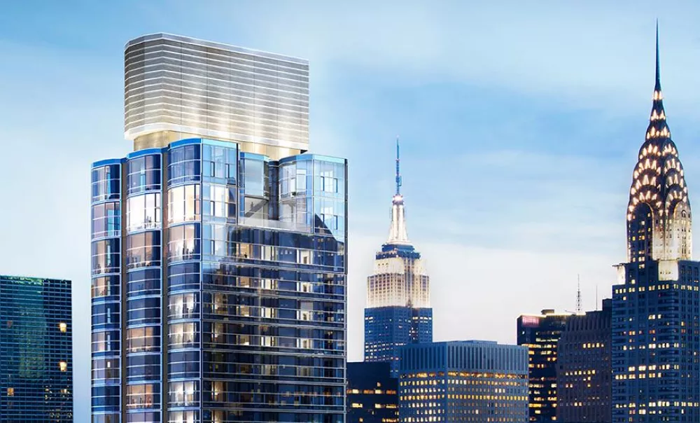 Conveniently located in midtown, 50 United Nations Plaza was designed by Foster + Partners, developed by Zeckendorf Development and Global Holdings and is comprised of 43 floors and a mere 88 residences. Offering an unparalleled level of privacy and service, the full-time staff includes a resident manager, concierge, 24-hour doorman, valet and porters. Its extensive amenities consist of a beautiful landscaped motor court, dramatic lobby with 16 foot high waterfall and open fireplace, a state of the art fitness center managed by The Wright Fit, a 75 foot swimming pool, sauna, massage room, conference room, children's playroom, bike room, wine cellar, storage units, cold storage for groceries, additional laundry facilities, garage and valet parking. Pets welcome!